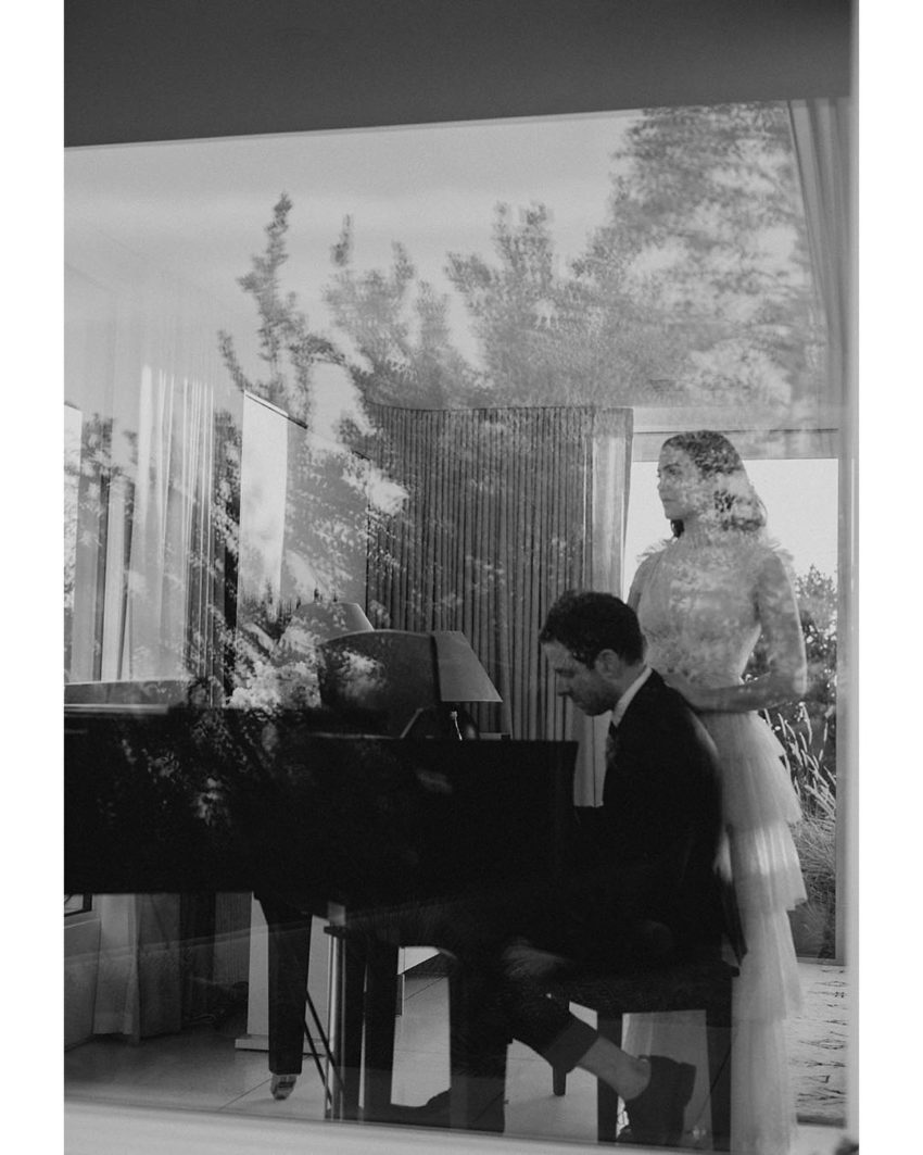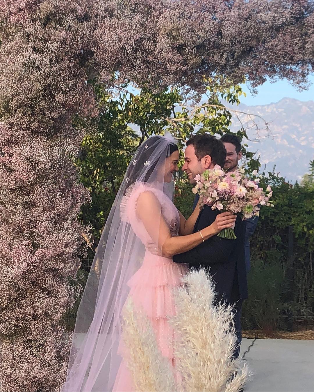 O casal disse o ‘sim’ numa cerimónia privada, ao pôr do sol, no quintal da casa da atriz.