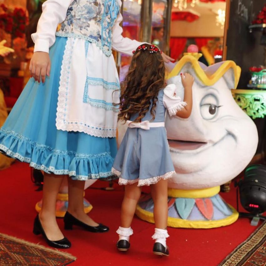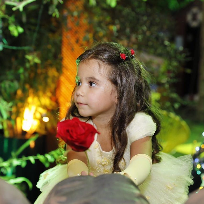 Vestida de princesa, a aniversariante iniciou o dia a cuidar do visual. Pintou as unhas, fez maquilhagem e foi penteada por profissionais. A festa, com o tema “A Bela e a Fera”, um dos desenhos favoritos da menina, contou com muitos amigos filhos de famosos e com Xuxa, a rainha dos baixinhos, que ajudou a cantar os parabéns.
