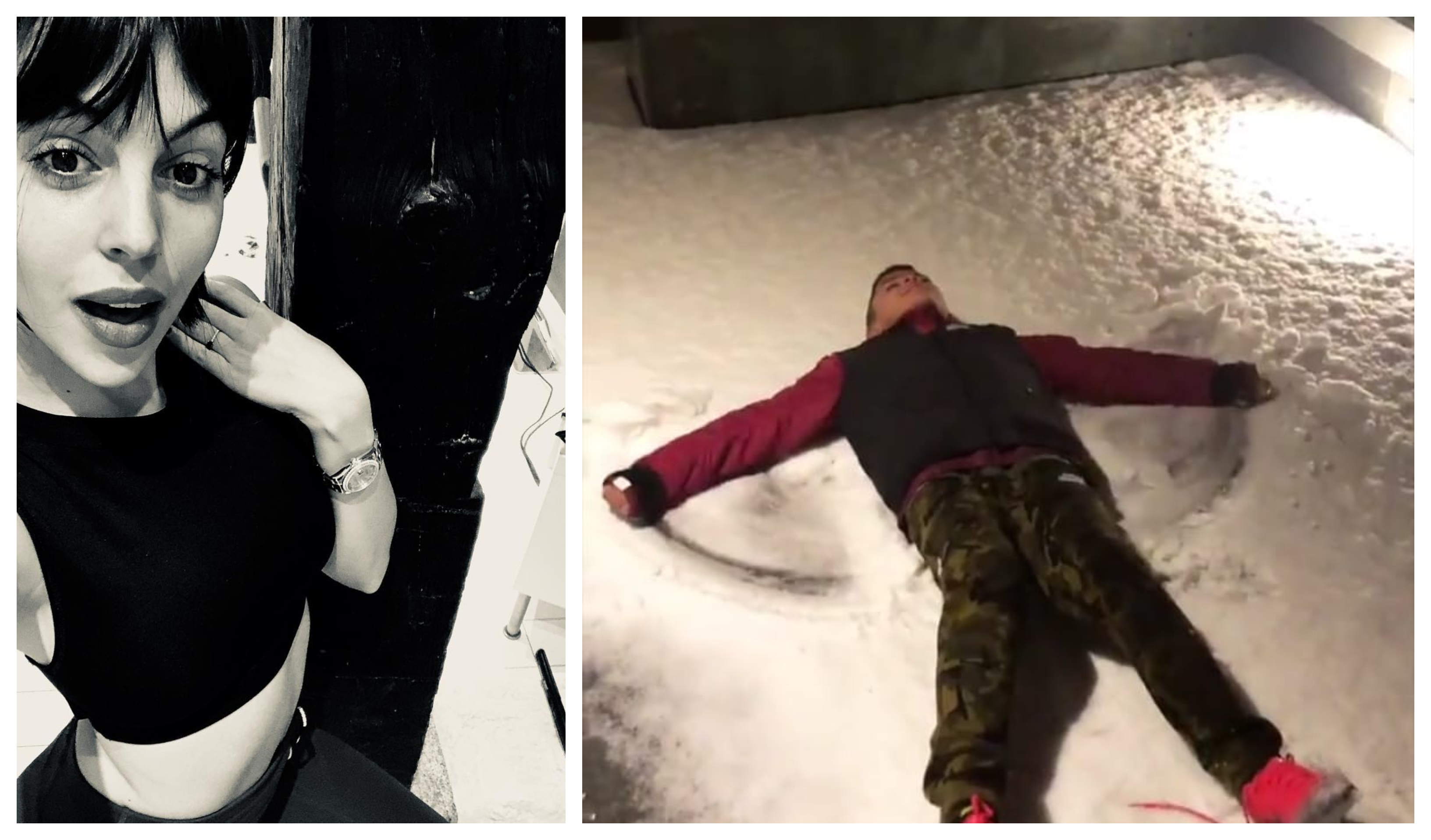 Ao cair da noite desta quarta-feira, a neve caiu em Turim, e a paisagem coberta de branco, fez com que a companheira de Cristiano Ronaldo e o filho mais velho saíssem para o terraço da casa para se divertirem.