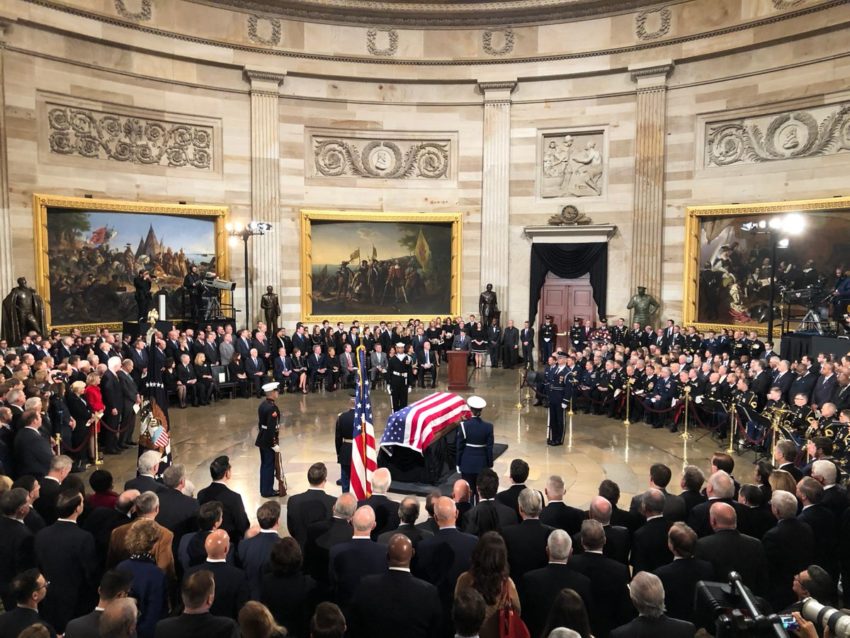 O caixão do 41º presidente dos Estados Unidos da América, que morreu sábado passado aos 94 anos, está desde segunda-feira à tarde no Capitólio em Washington.