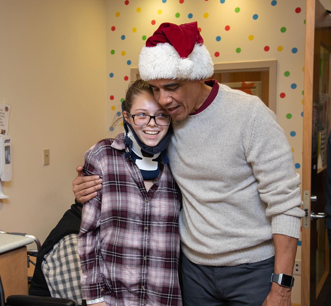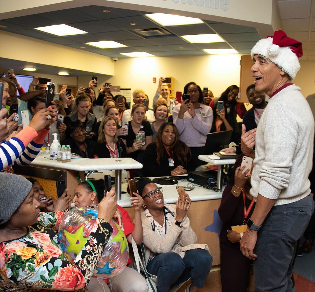 Thank you @BarackObama for making our patients’ day so much brighter. Your surprise warmed our hallways and put smiles on everyone’s faces! Our patients loved your company…and your gifts! https://t.co/bswxSrA4sQ ❤️ #HolidaysAtChildrens #ObamaAndKids pic.twitter.com/qii53UbSRS