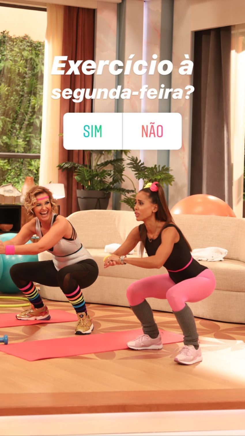 Numa atitude arrojada e segura da sua beleza, a apresentadora recebeu esta segunda-feira a primeira convidada do dia com um maiô de ginástica.