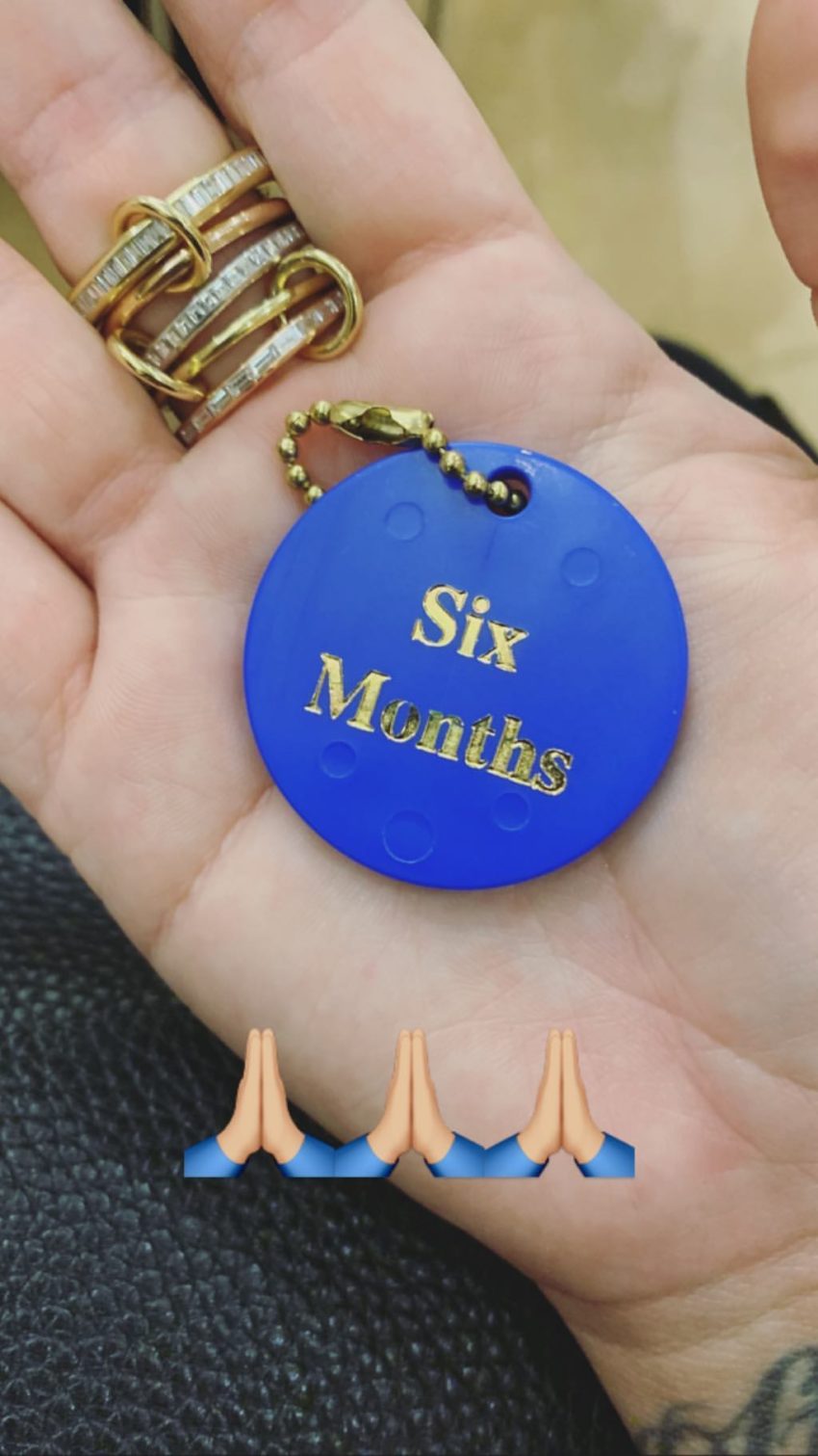 Demi Lovato partilhou nas redes sociais a celebração, que teve direito a bolo, oferecido pela sua equipa, com uma mensagem: “Feliz seis meses. Estamos muito orgulhosos de ti! Com amor, equipa DL”.