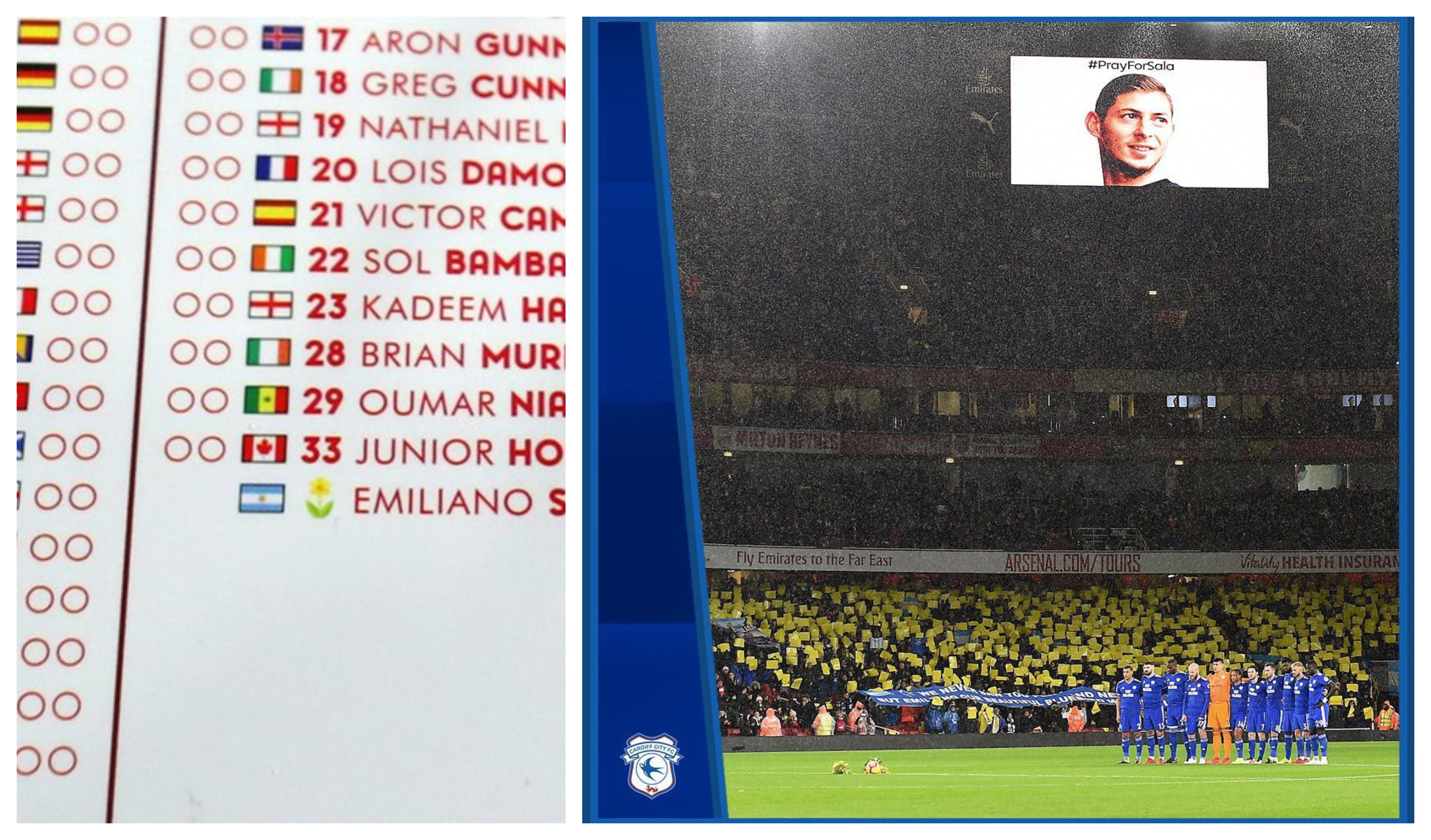 O Arsenal colocou ainda o nome do futebolista, dado como desaparecido há uma semana, junto da lista dos atletas que fazem parte do plantel. Na lista apresentada, Sala não tem número, está identificado por um narciso, a flor nacional do País de Gales.