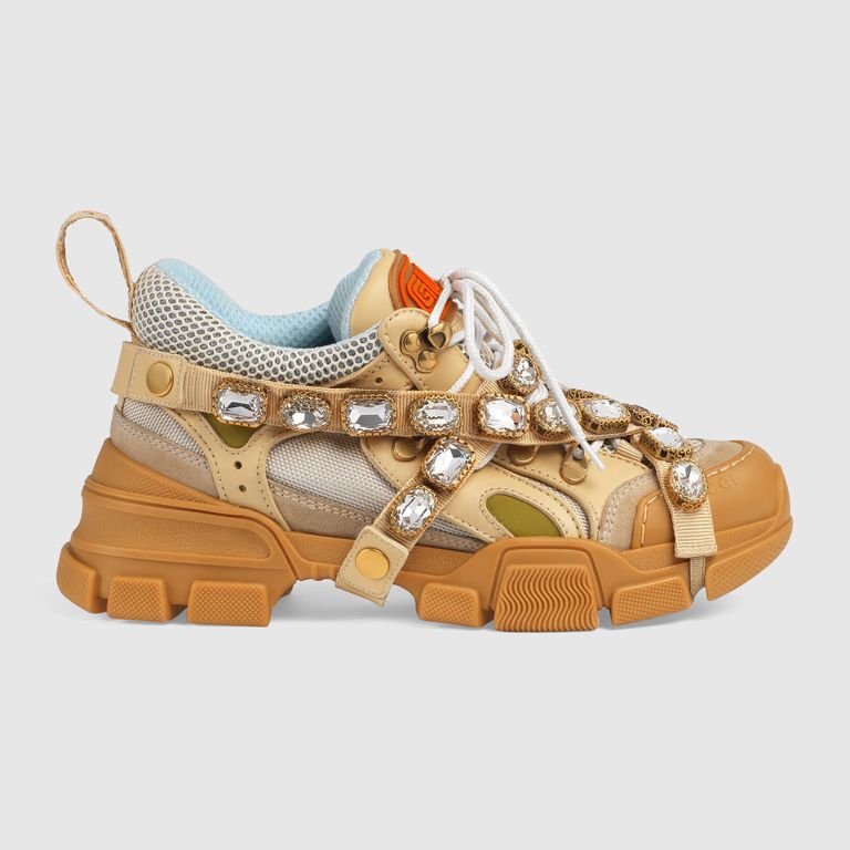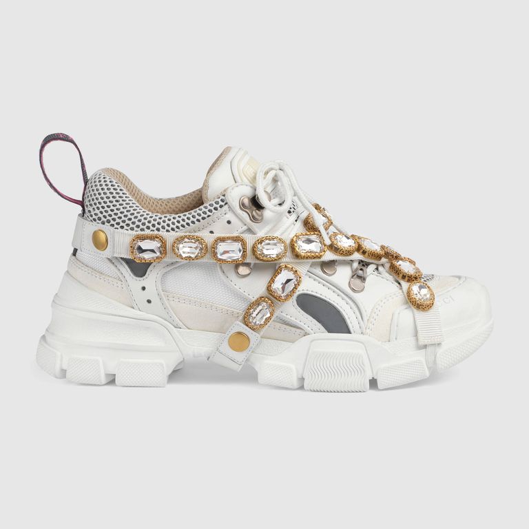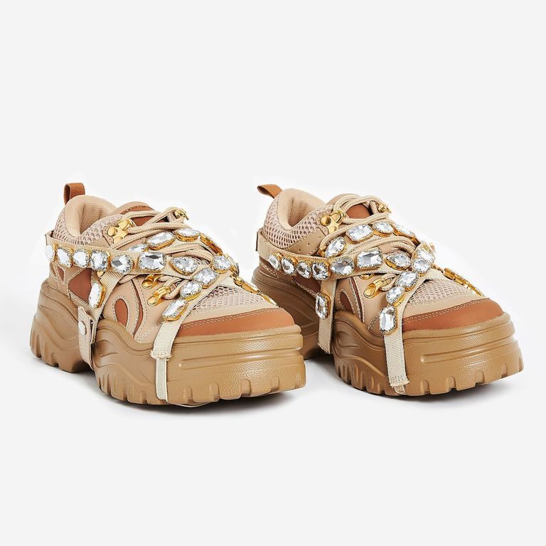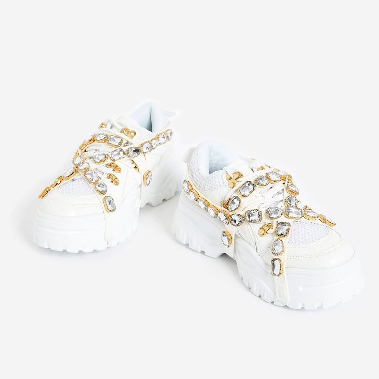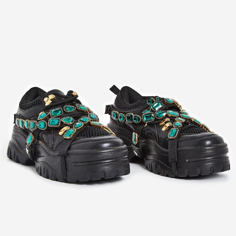 A marca britânica Ego pegou nesta tendência e conseguiu os ténis com joias para a nova estação, quase idênticos aos da Gucci.
