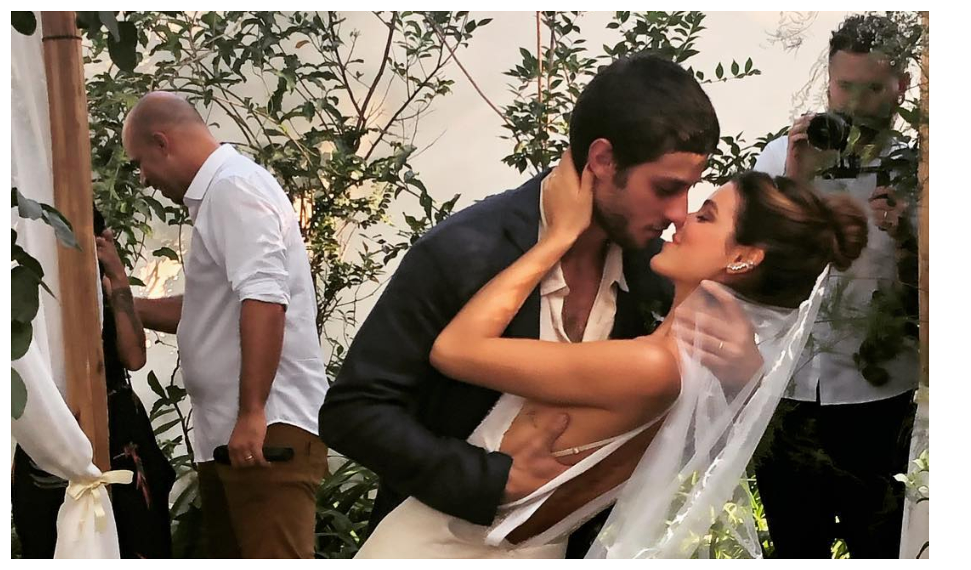 A cerimónia intimista reuniu para além do protagonista Emilio Dantas, que interpreta o cantor de axé Beto Falcão em “Segundo Sol”, Sasha Meneghel e outros famosos, entre familiares e amigos dos noivos. O casal namorou quatro anos, tendo acabado e recomeçado a relação que terminou em casamento.
