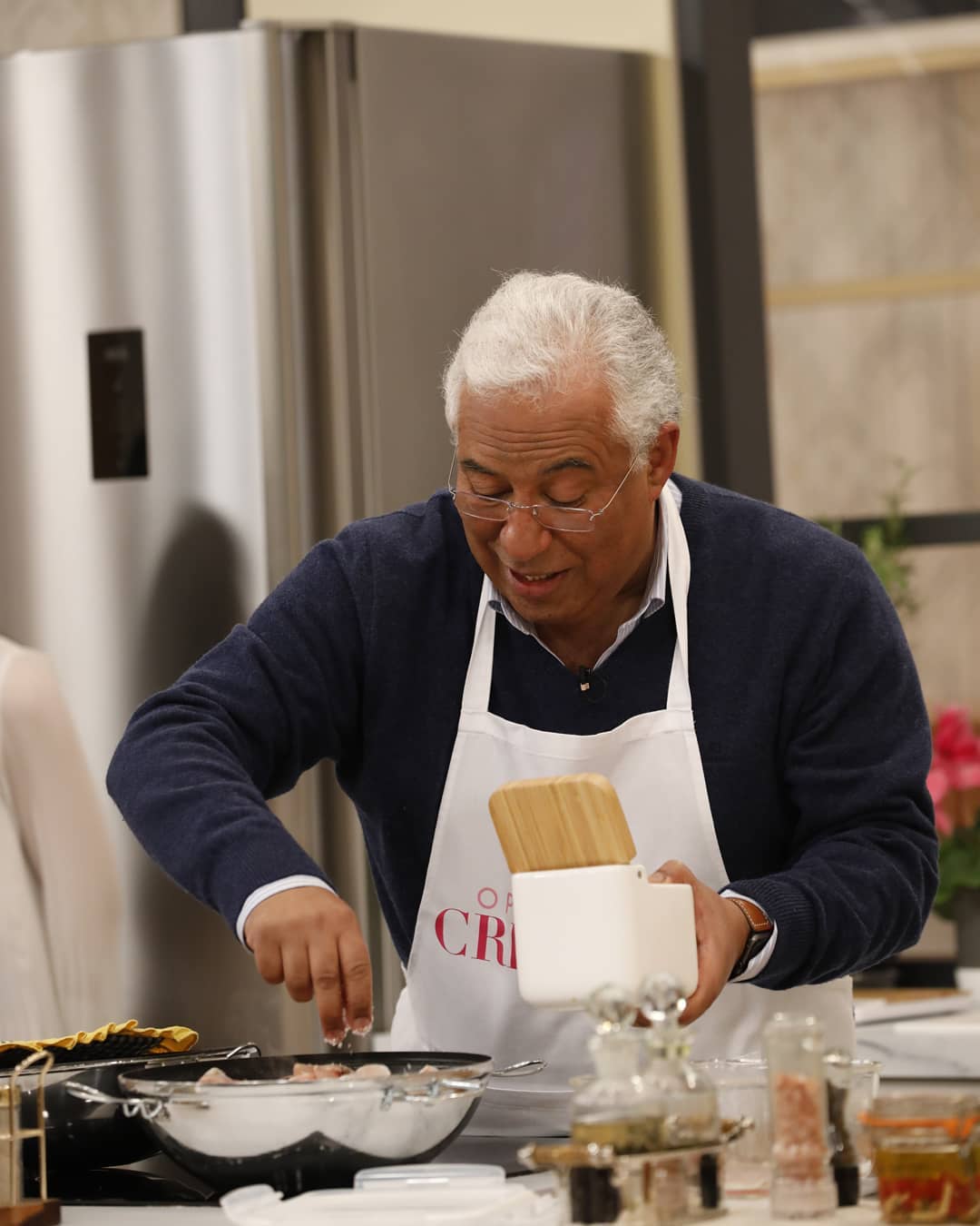A apresentadora surpreendeu o chefe do governo e atual secretário-geral do Partido Socialista, com a presença da mulher, Fernanda Tadeu, dos filhos Pedro e Catarina e também da nora, Sara Rocha. Uma reunião familiar que acabou com o primeiro-ministro de avental a preparar uma cataplana de peixe.
