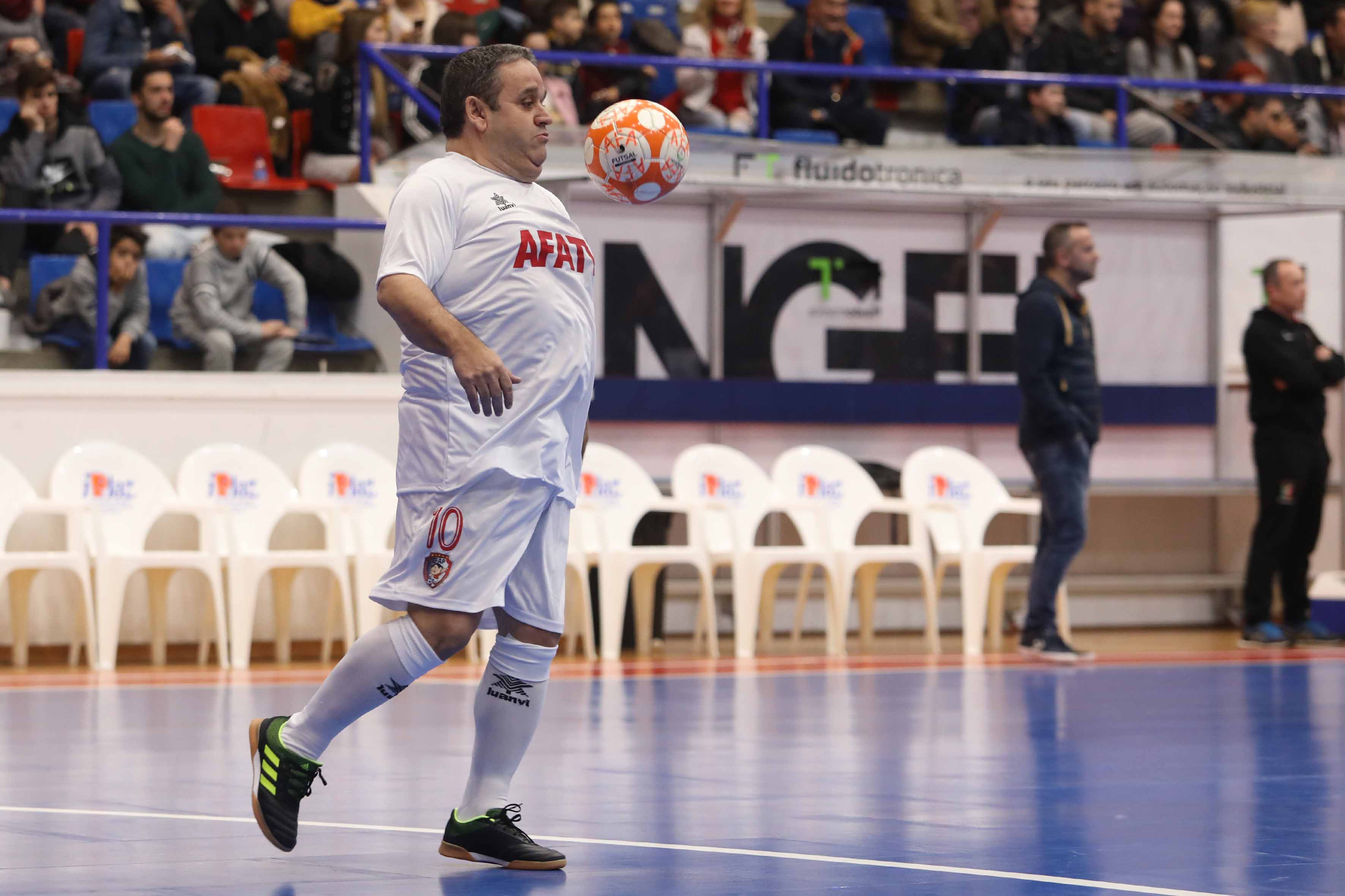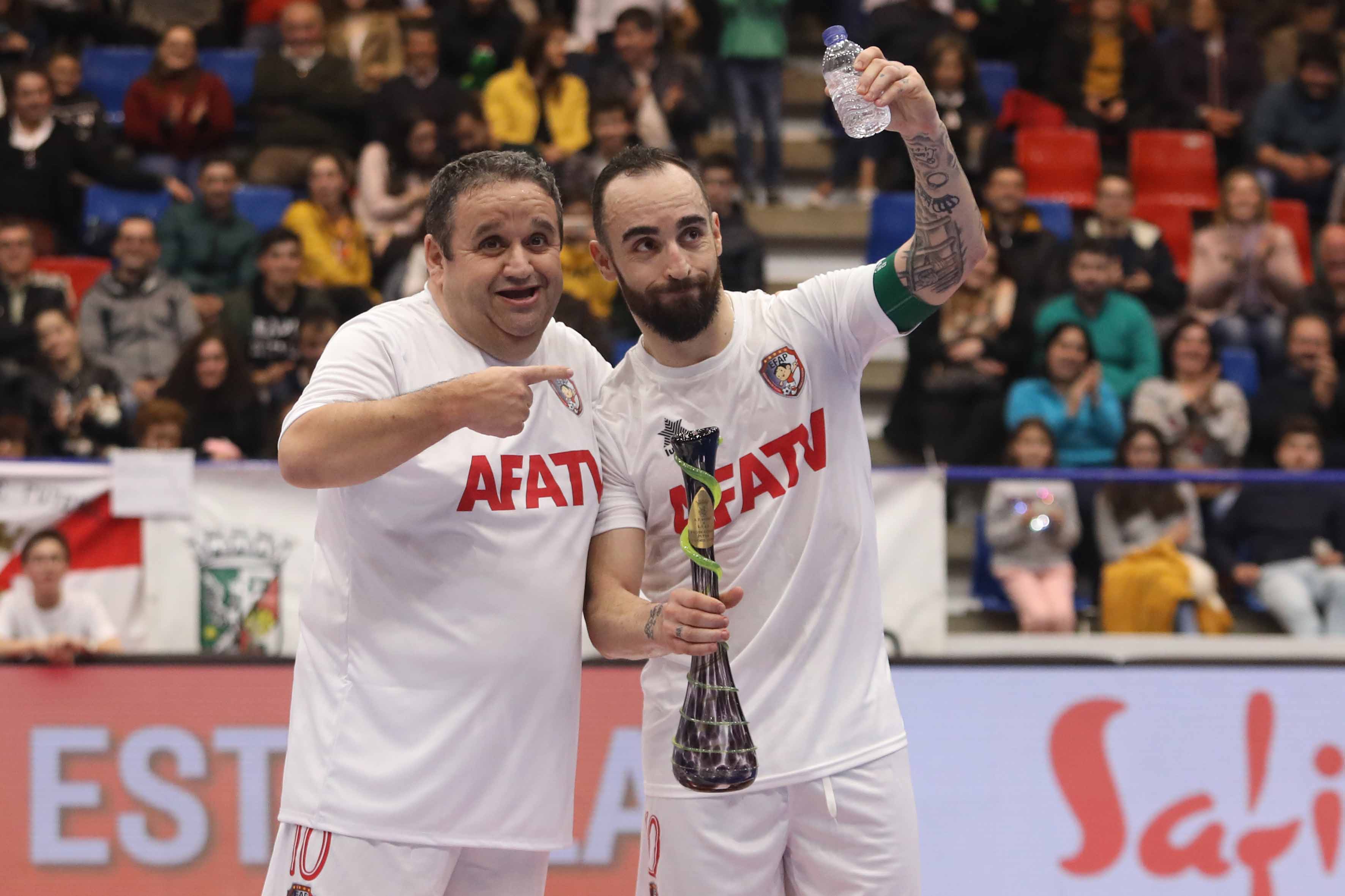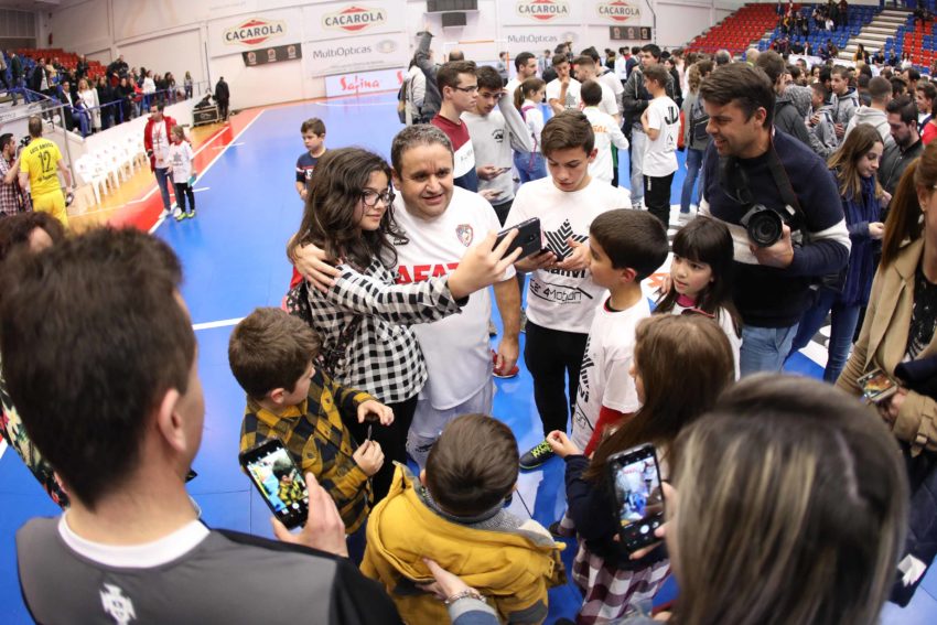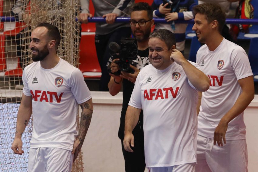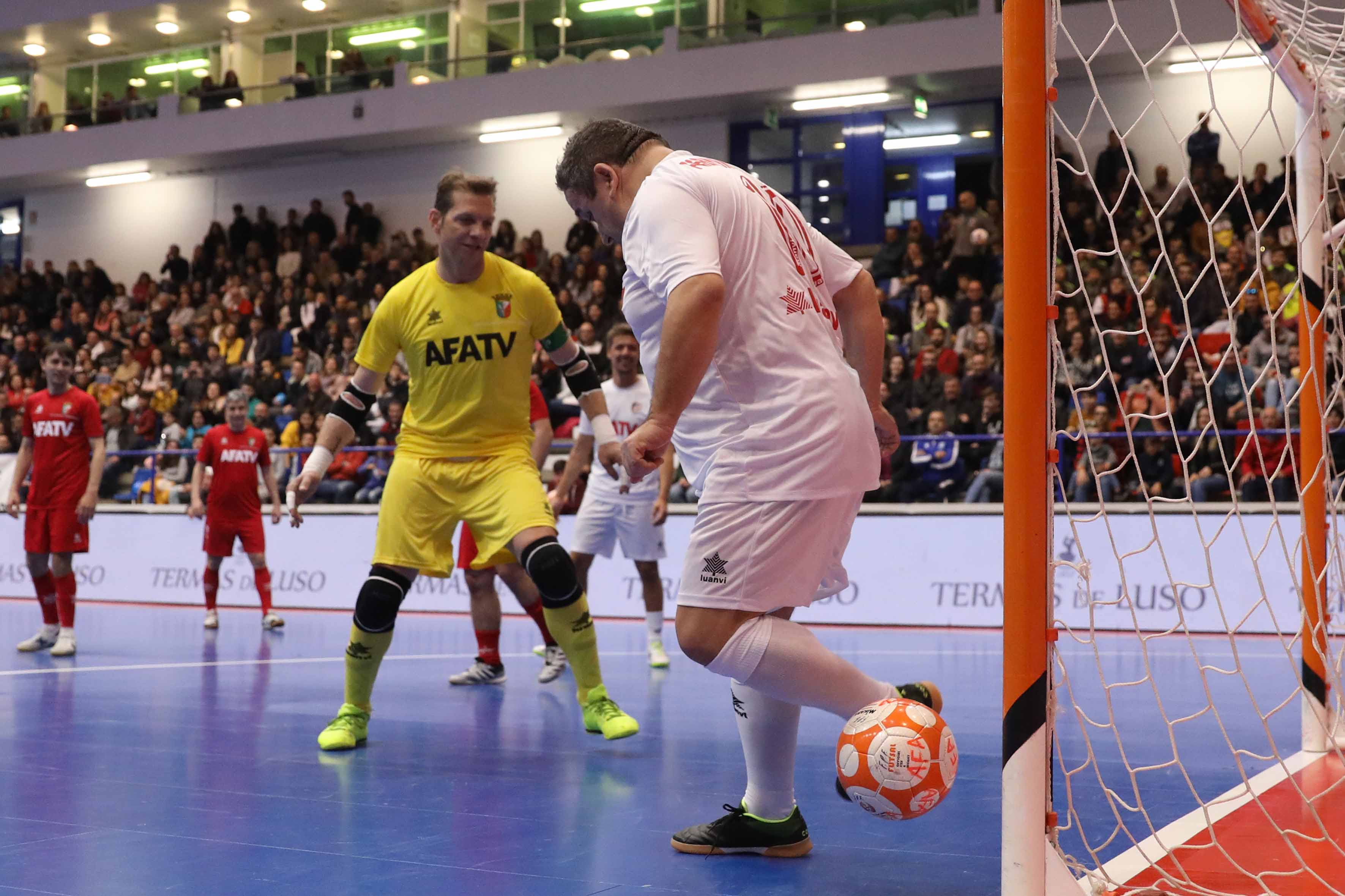 Depois de, ao intervalo, terem sido homenageados os campeões da Europa 2018 presentes neste jogo solidário e de terem chovido peluches do público para esta causa, na segunda parte entraram em ação os jogadores profissionais para presentearem o público com belos momentos de futsal.