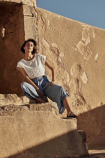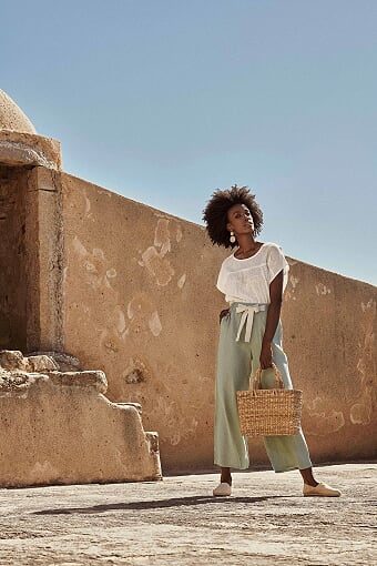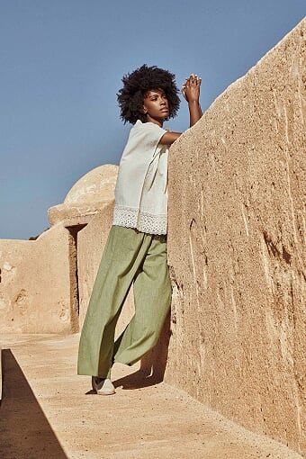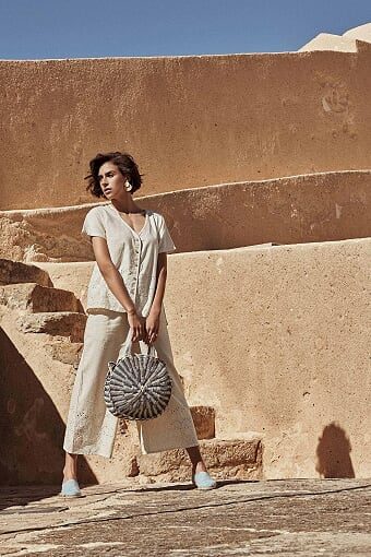 A paleta de cores oscila entre os tons neutros e terra, onde reina o bege junto com apontamentos em azul petróleo e verde glaciar. Conheça algumas peças da coleção: