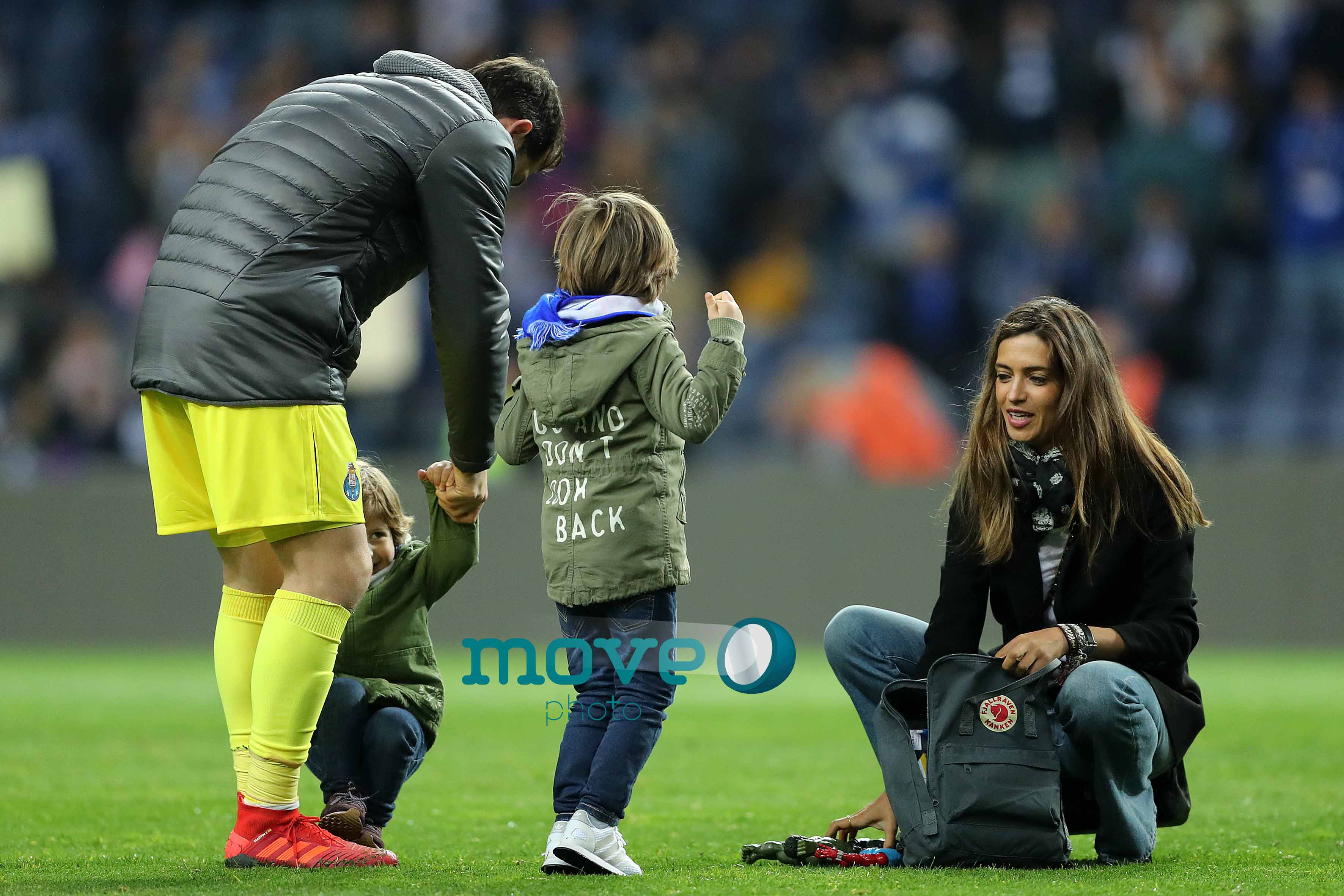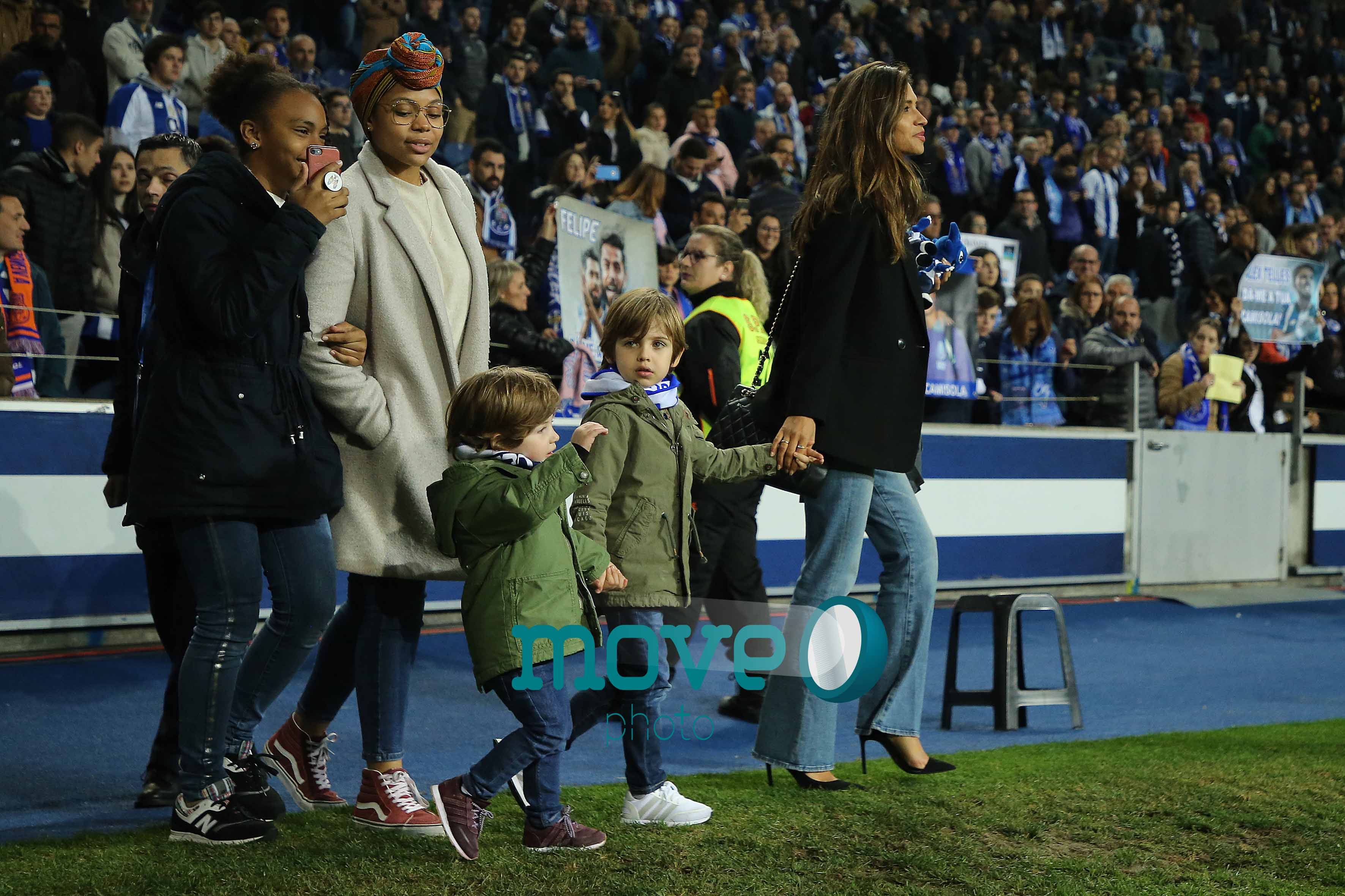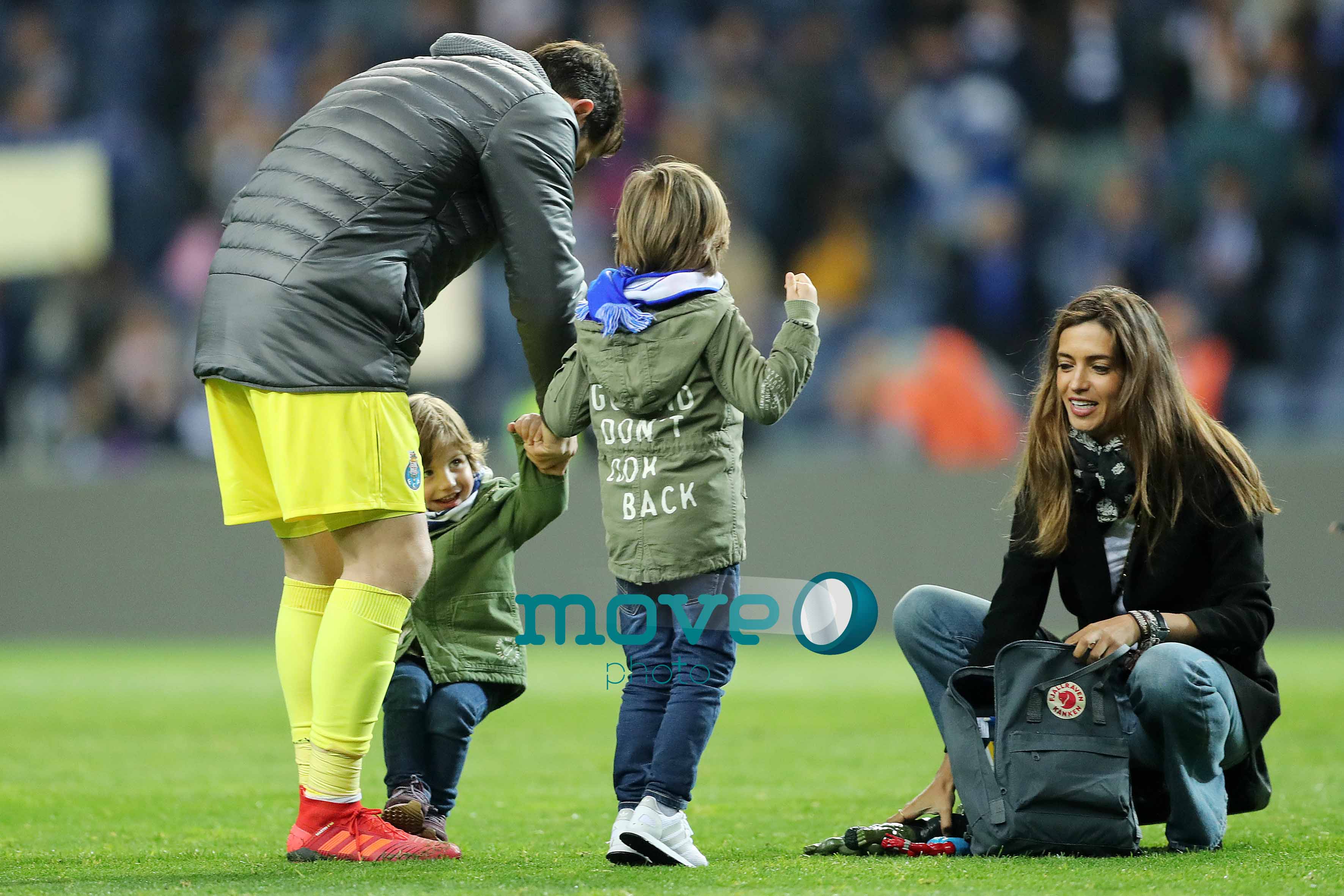 Sara Carbonero e os filhos, juntaram-se aos outros familiares dos craques do FC Porto na habitual roda que marca o final dos jogos dos azuis e brancos.