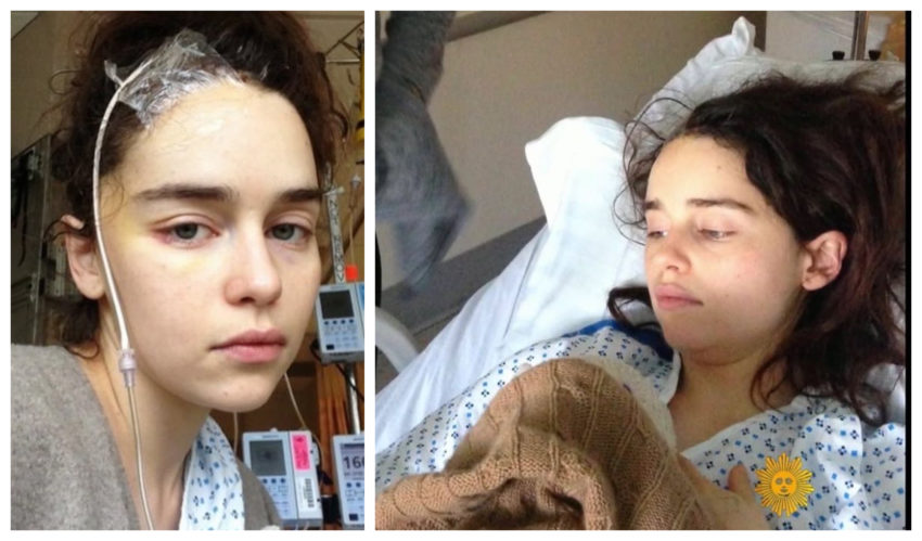 A primeira hospitalização da atriz aconteceu em 2011, após filmar a primeira temporada da série. Emilia Clarke começou a sentir-se mal na academia, “como se um elástico estivesse a espremer” o seu cérebro.