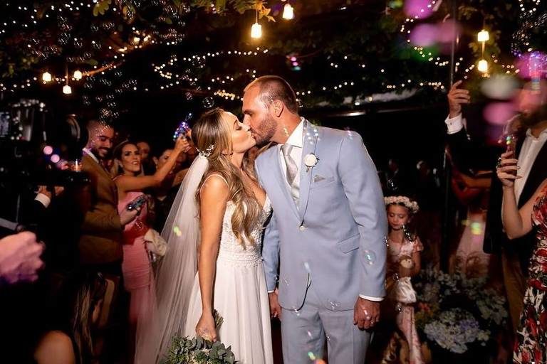 O deputado federal e filho do presidente do Brasil, Eduardo Bolsonaro, de 34 anos, casou este sábado, 25 de maio, com a psicóloga Heloisa Wolf.