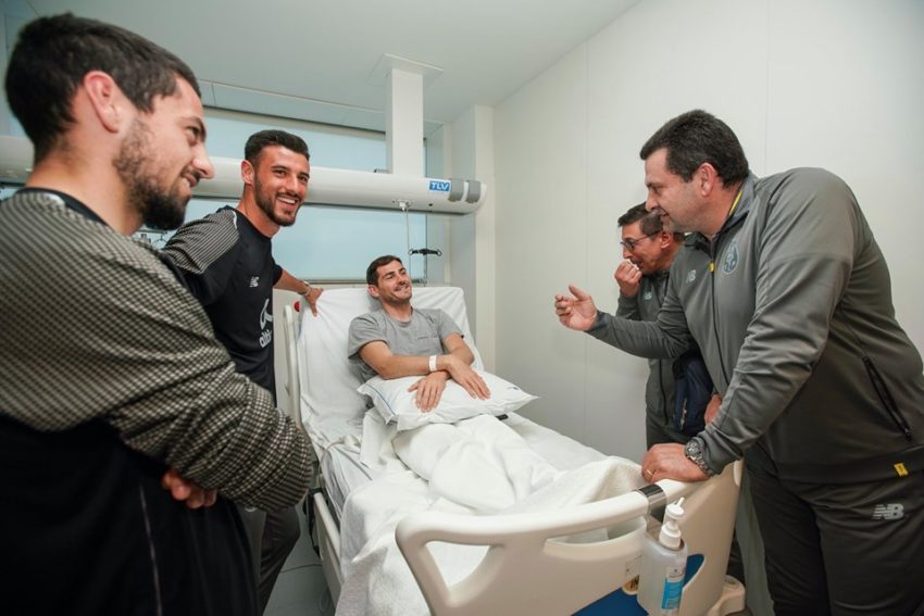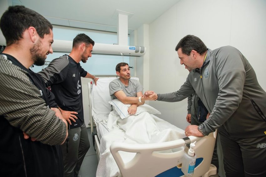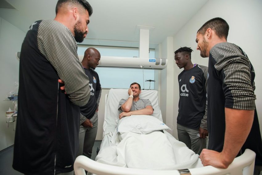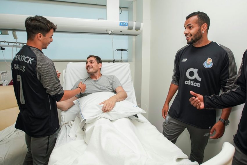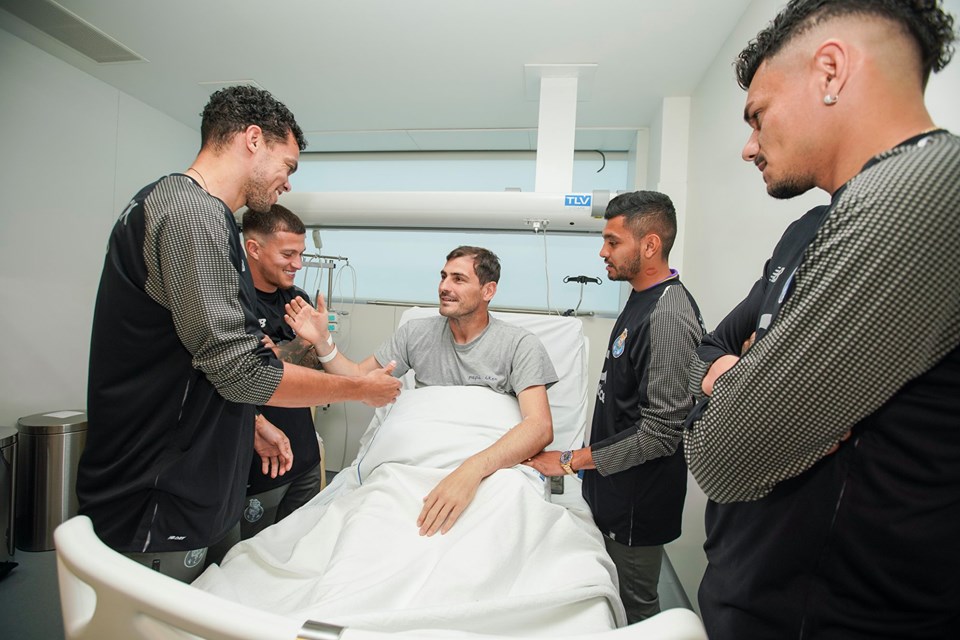 Os jogadores do plantel portista e a equipa técnica surgiu no Hospital CUF Porto com a camisola de Iker Casillas vestida, em homenagem ao guarda-redes espanhol que sofreu um enfarte do miocárdio na última quarta-feira, 1 de maio.