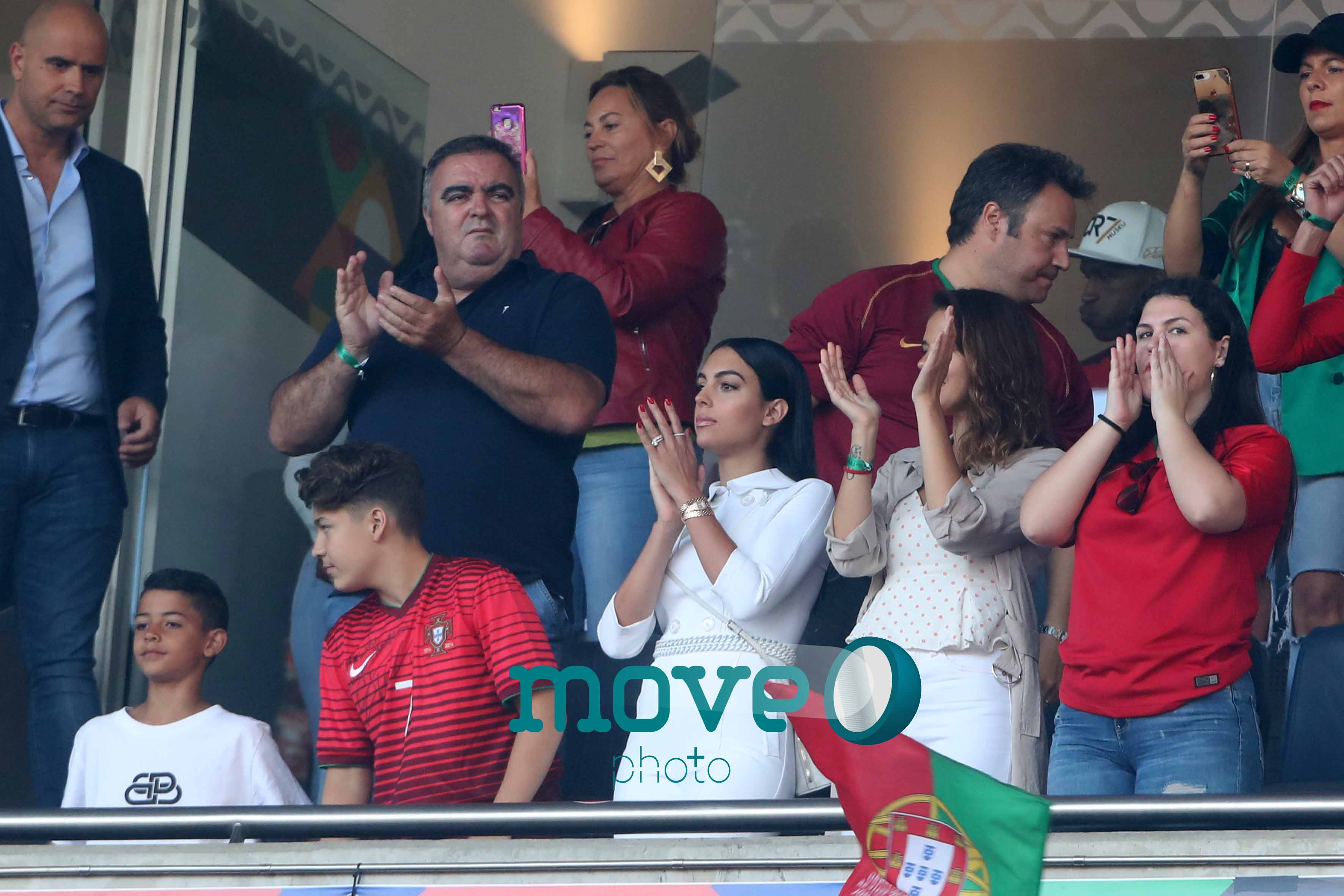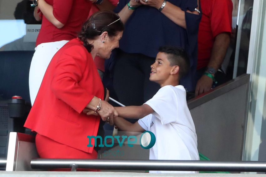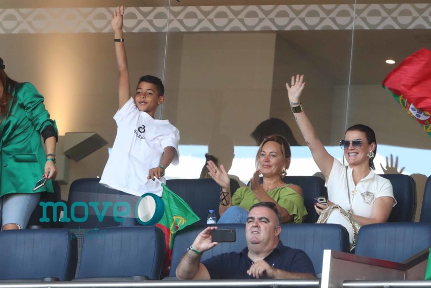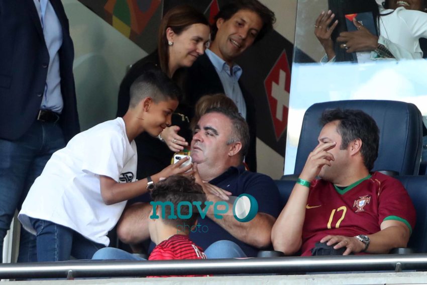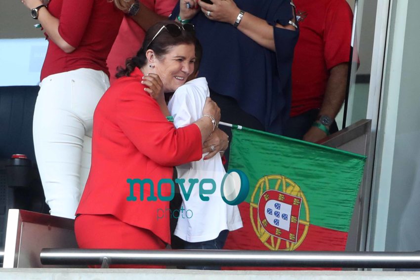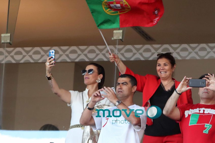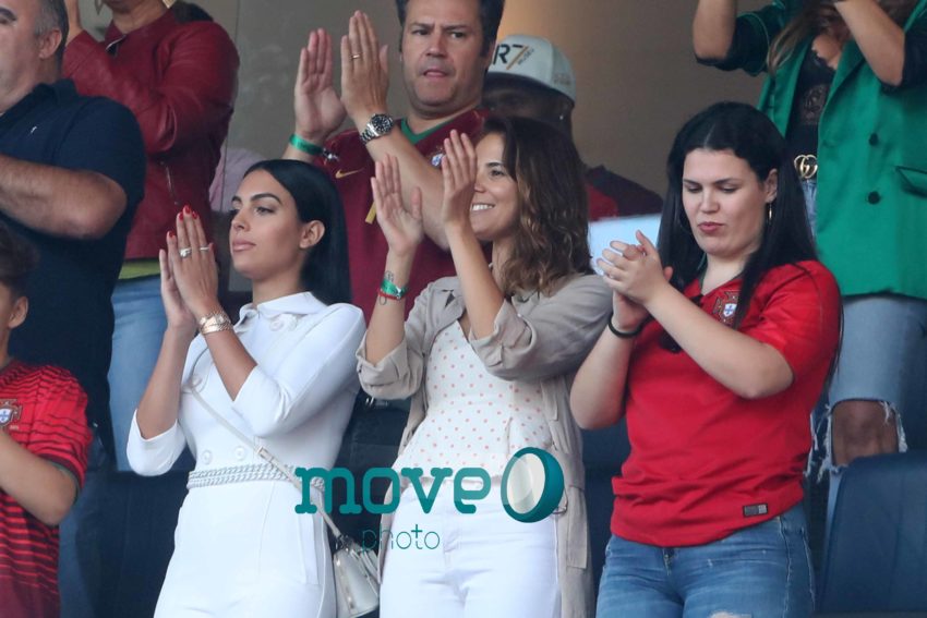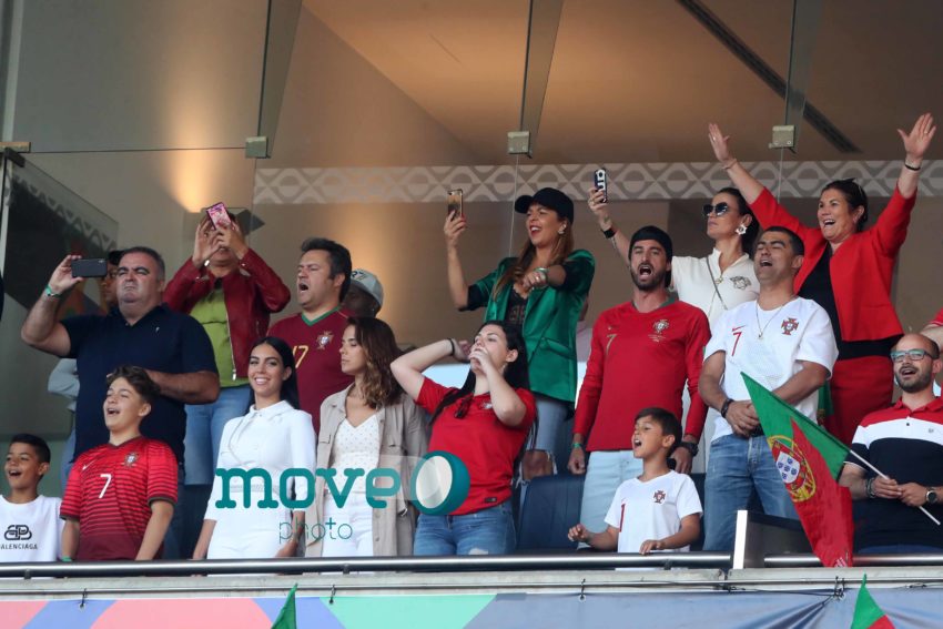 Cristiano Ronaldo teve a namorada Georgina Rodriguez, o filho mais velho, Cristianinho, a mãe, Dolores Aveiro, os irmãos e alguns amigos, num dos camarotes do estádio, onde vibraram do princípio ao fim da partida.