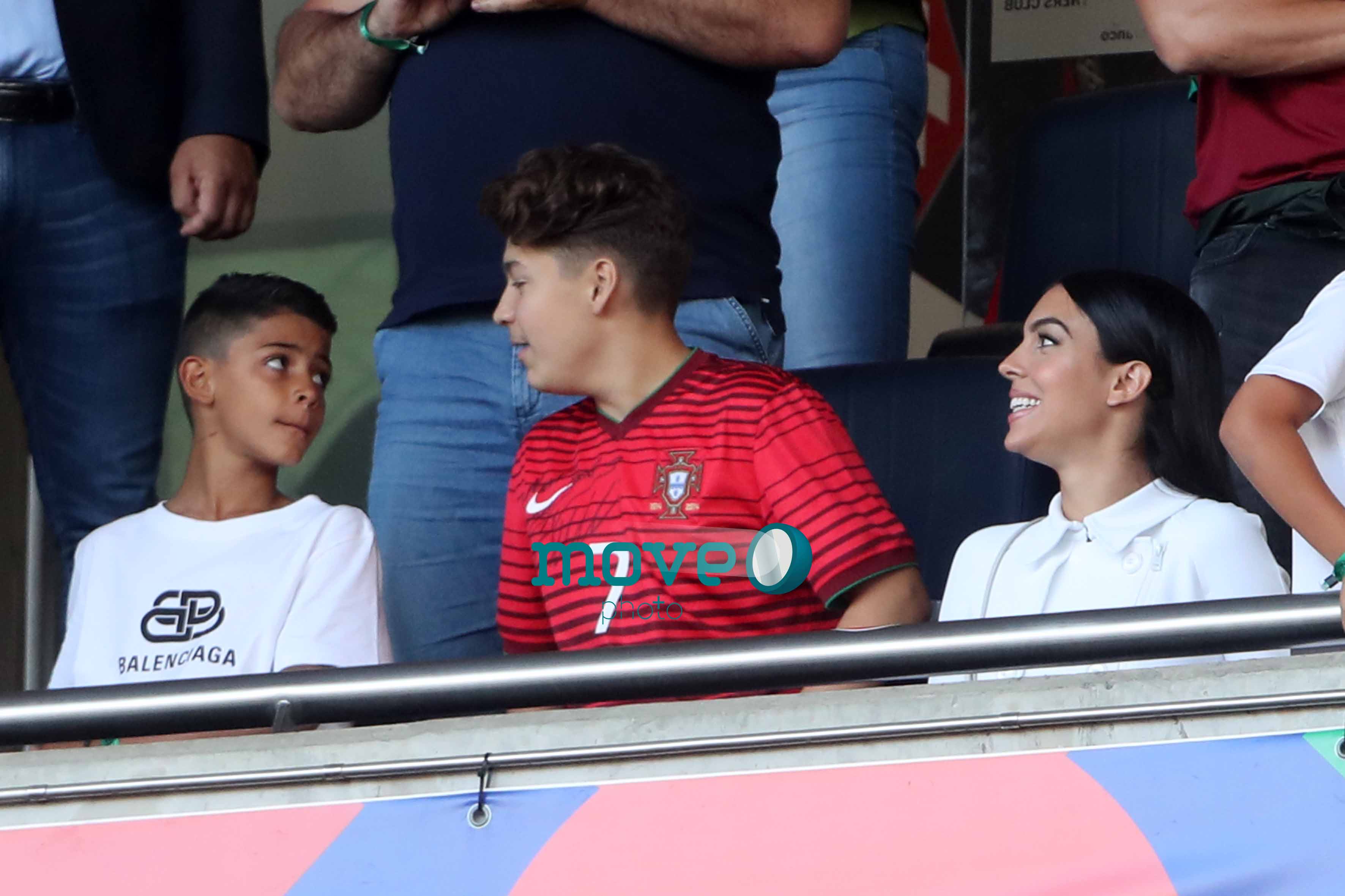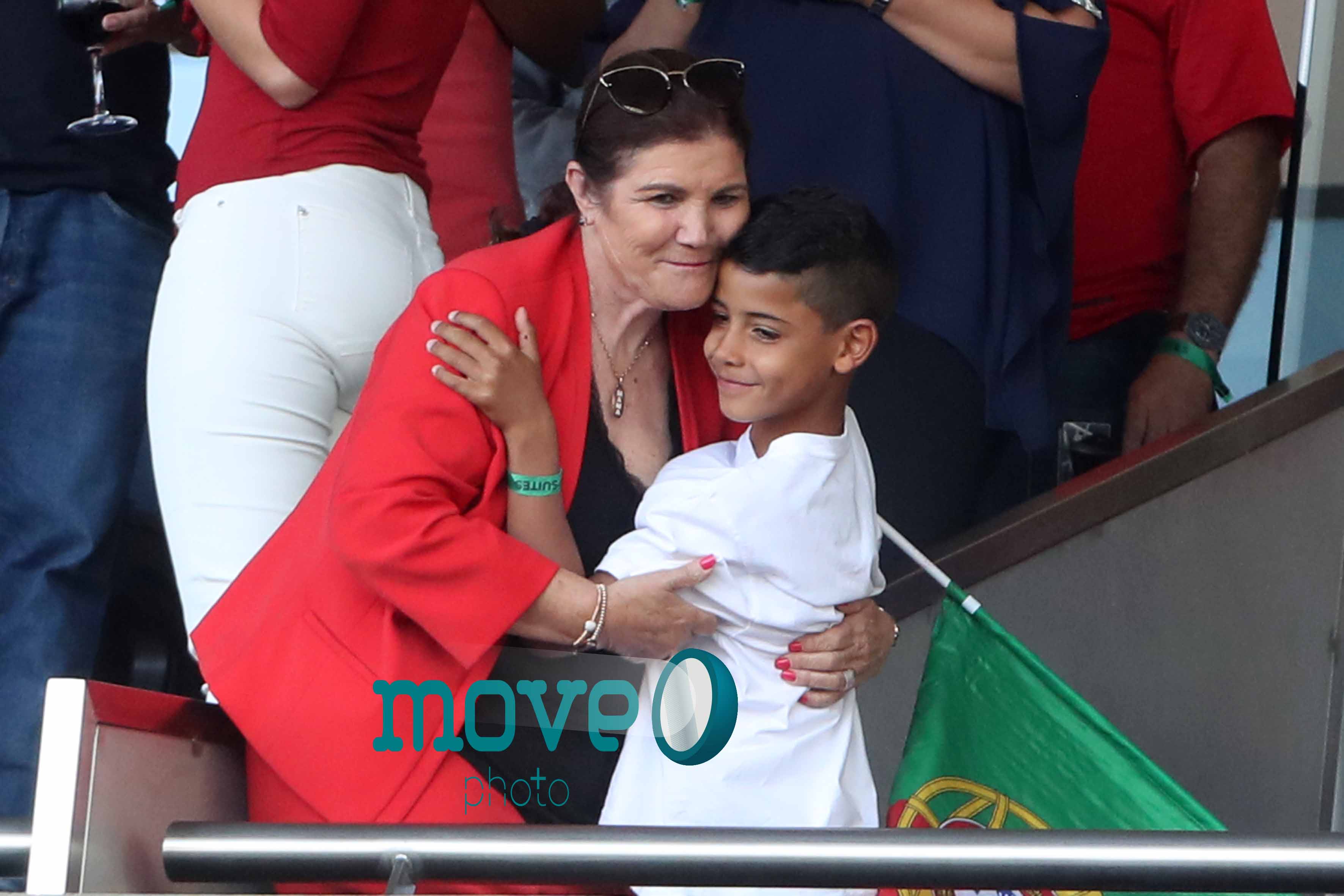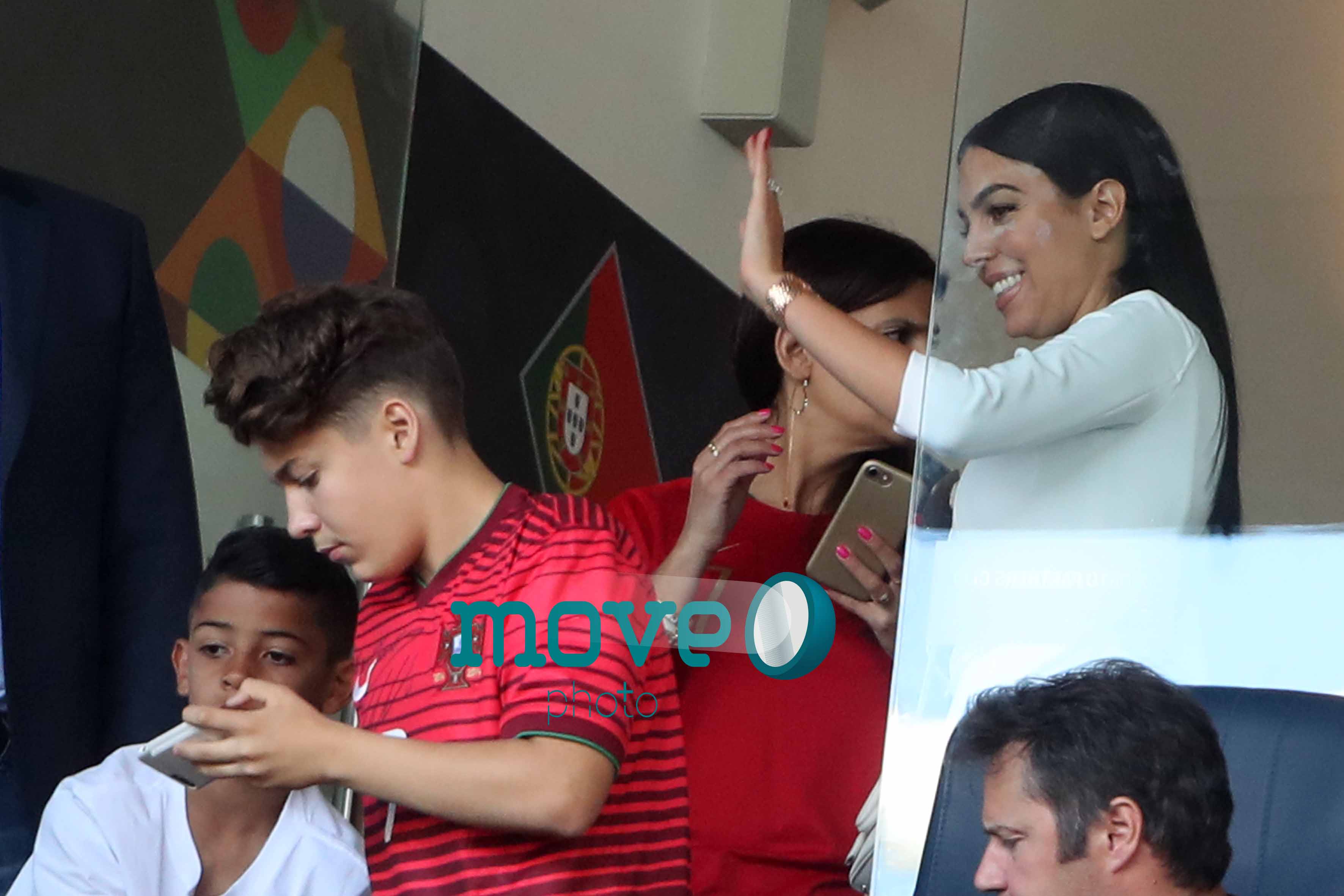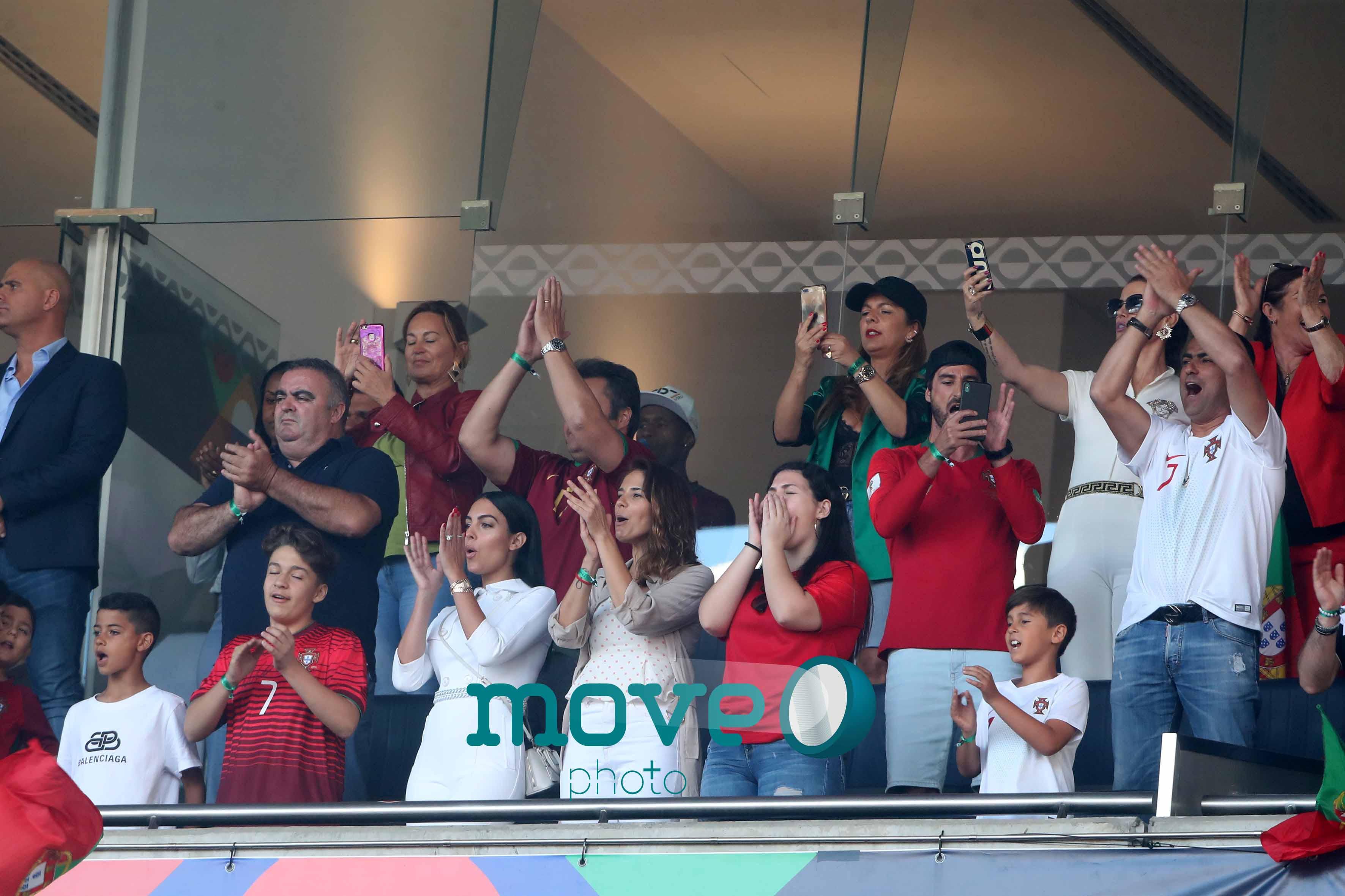 Cristiano Ronaldo teve a namorada Georgina Rodriguez, o filho mais velho, Cristianinho, a mãe, Dolores Aveiro, os irmãos e alguns amigos, num dos camarotes do estádio, onde vibraram do princípio ao fim da partida.