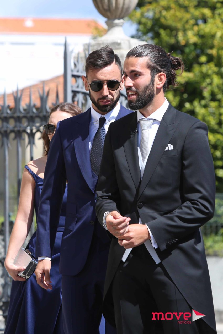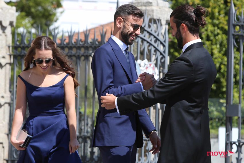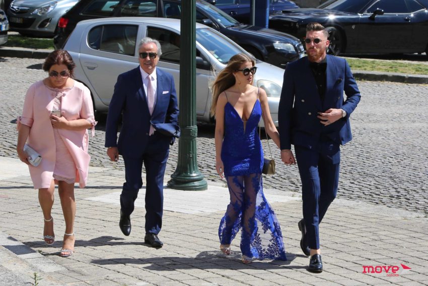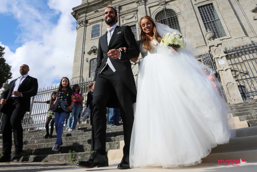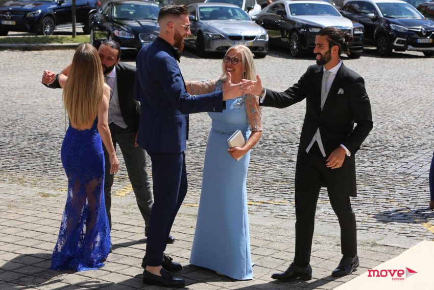 Juntos há três anos, o casal trocou alianças rodeado de familiares e amigos, entre os quais os futebolistas José Sá, Varela, Ruben Neves, Hernâni e o sportinguista Bruno Fernandes.