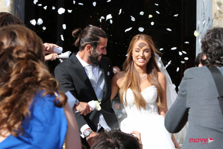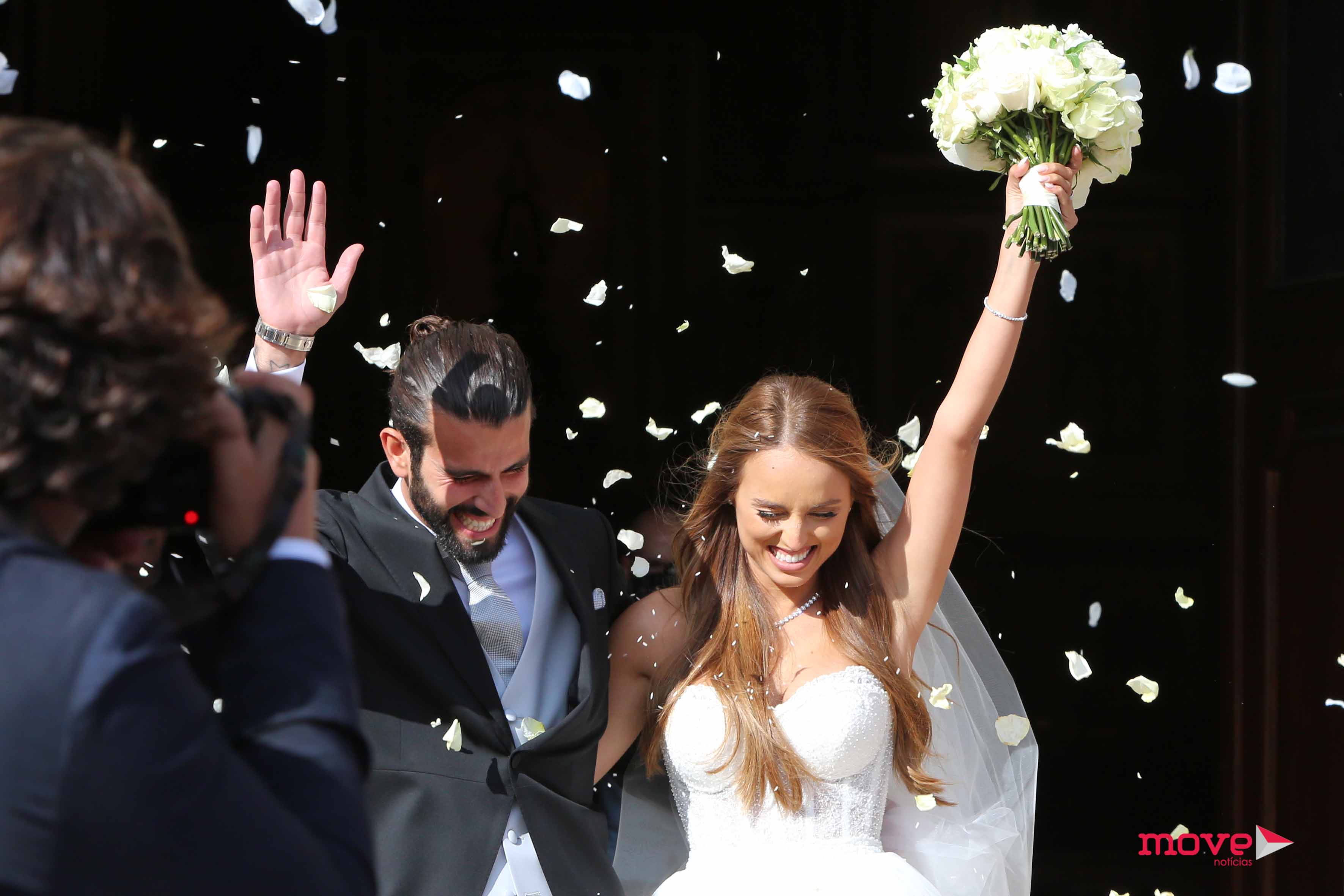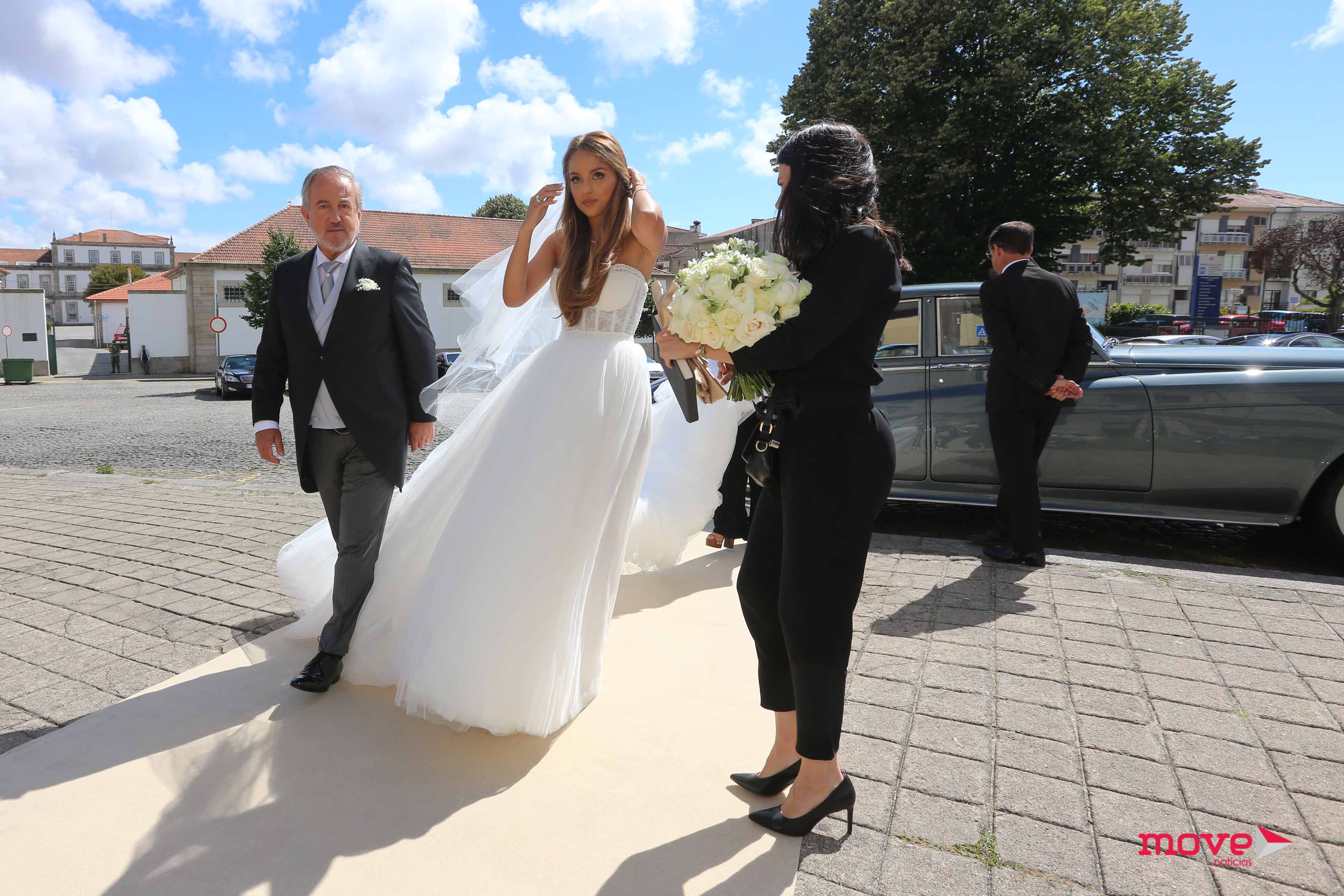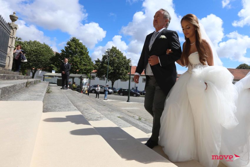Juntos há três anos, o casal trocou alianças rodeado de familiares e amigos, entre os quais os futebolistas José Sá, Varela, Ruben Neves, Hernâni e o sportinguista Bruno Fernandes.