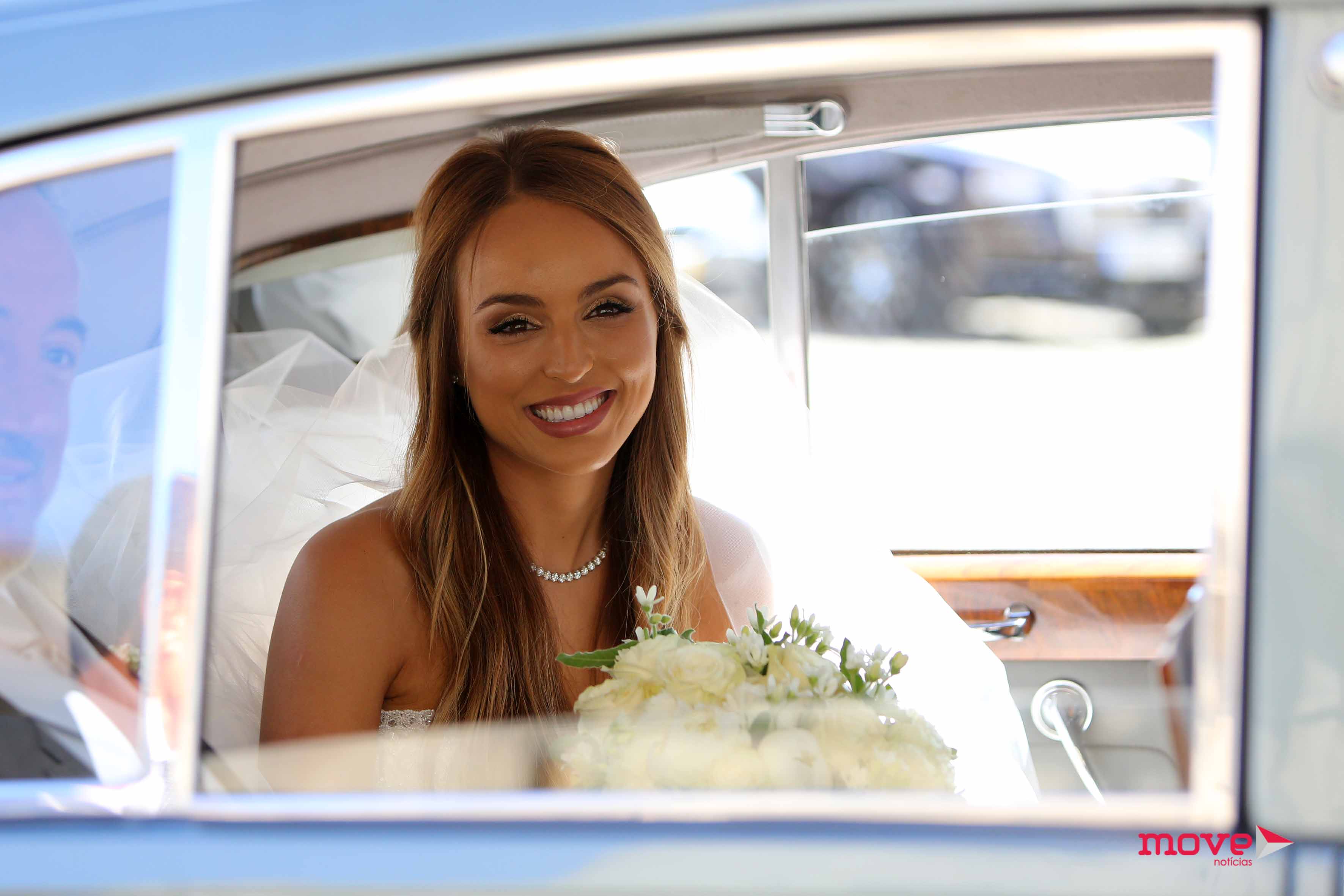O bouquet, de rosas e peónias brancas, completaram na perfeição o look romântico da advogada.
