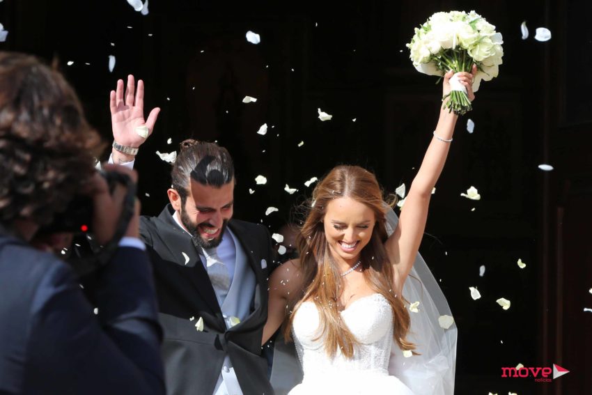 A noiva optou pelo tradicional vestido branco, e o longo véu, comprados em Milão, da autoria do designer Zuhair Murad. Um estilo tradicional modernizado, caraterísticas da marca do estilista libanês que representa uma das marcas de moda mais conhecidas mundialmente – referência de alta costura e luxo.