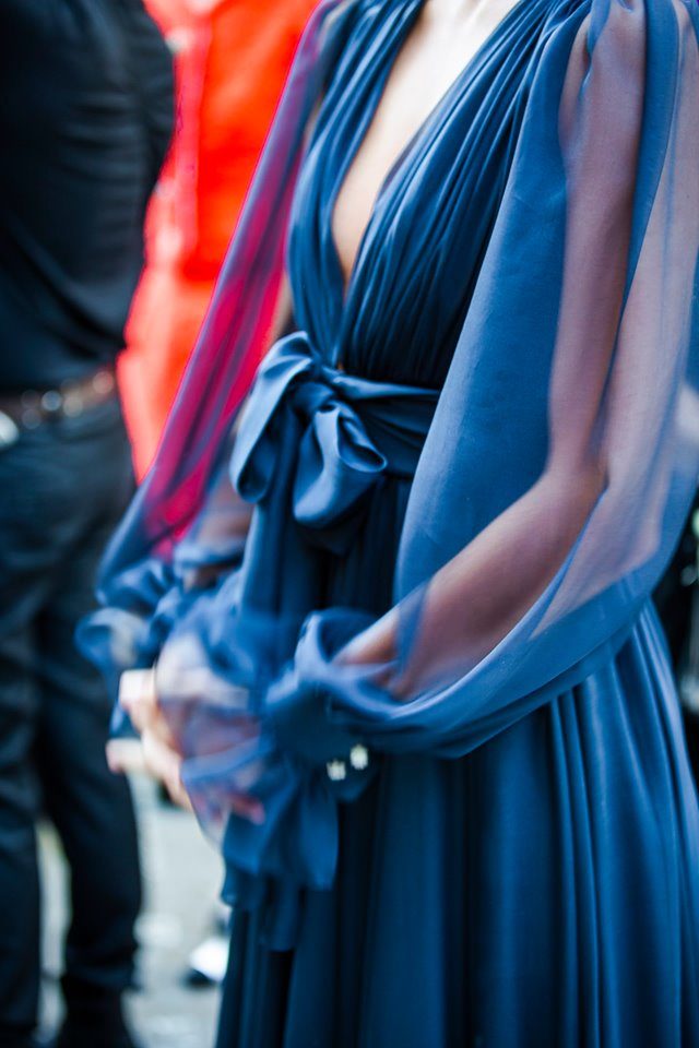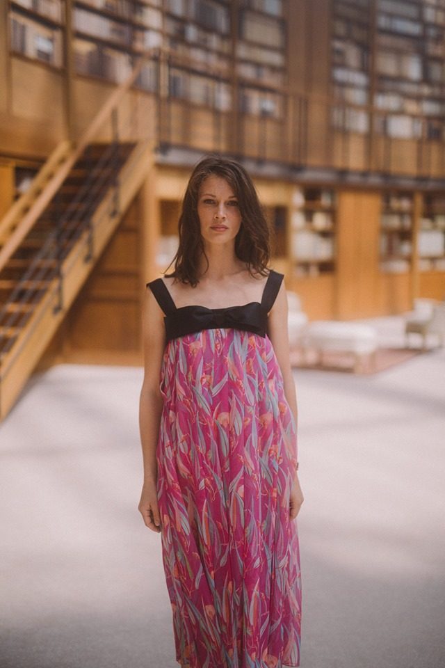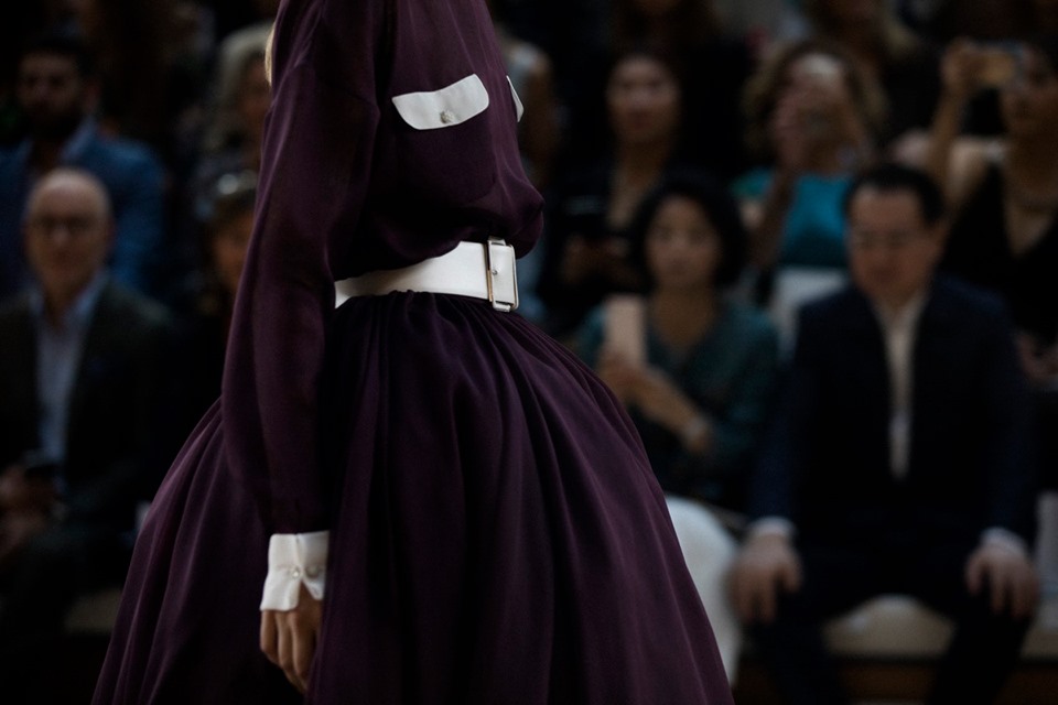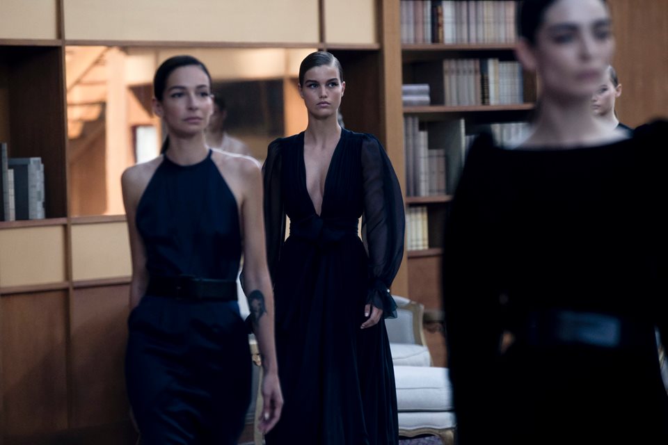 A modelo Kaia Gerber, a última musa do falecido criador, exibiu uma versão em saia e houve também espaço para vestidos longos, fluidos com queda, e drapeados.