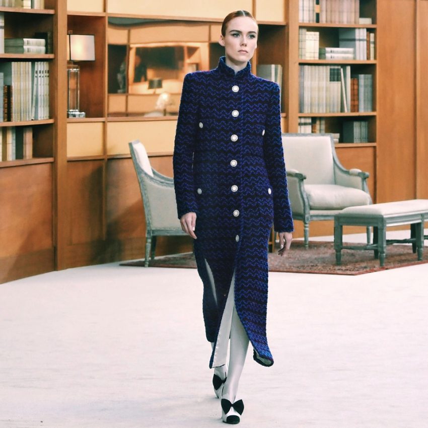 Virginie Viard apresentou a coleção outono/inverno 2019. Manteve os clássicos tailleurs de tweed e inseriu alguma ousadia, com mangas volumosas e ombreiras. Os cabelos apanhados num rabo de cavalo dos modelos, continuaram na linha elegante de Karl Lagerfeld.