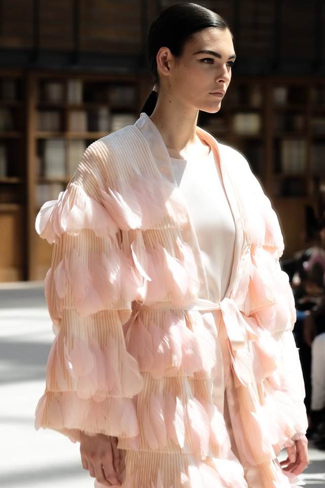 Viard encerrou o desfile ao som do refrão de Glory Box dos Portishead: “Eu só quero ser uma mulher”, com um coordenado de calças, um top e casaco com penas aplicadas, sem o clássico vestido de noiva. Veja as fotos: