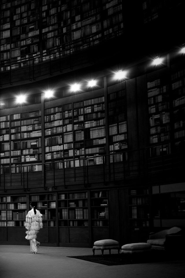 Desta vez o Grand Palais, situado no coração de Paris, transformou-se numa biblioteca, não uma biblioteca qualquer, mas uma réplica da biblioteca pessoal de Lagerfeld.