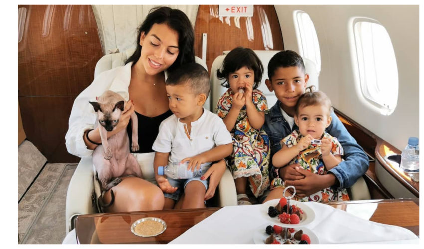“A desejar ver o papá“, escreveu Georgina Rodriguez na legenda da imagem que partilhou, nas redes sociais, da comitiva no jato particular.