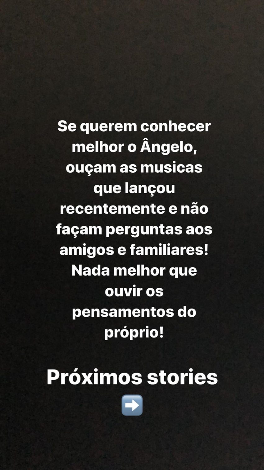 Em resposta às pressões que tem sentido para contar detalhes sobre a evolução da doença do colega de casa, Tiago Paiva sugere: “Se querem conhecer melhor o Ângelo, ouçam as músicas que lançou recentemente e não façam perguntas a amigos e familiares”. “Nada melhor do que ouvir os pensamentos do próprio”, explica, destacando os temas musicais recentemente lançados por Ângelo Rodrigues, que como músico assina OX.