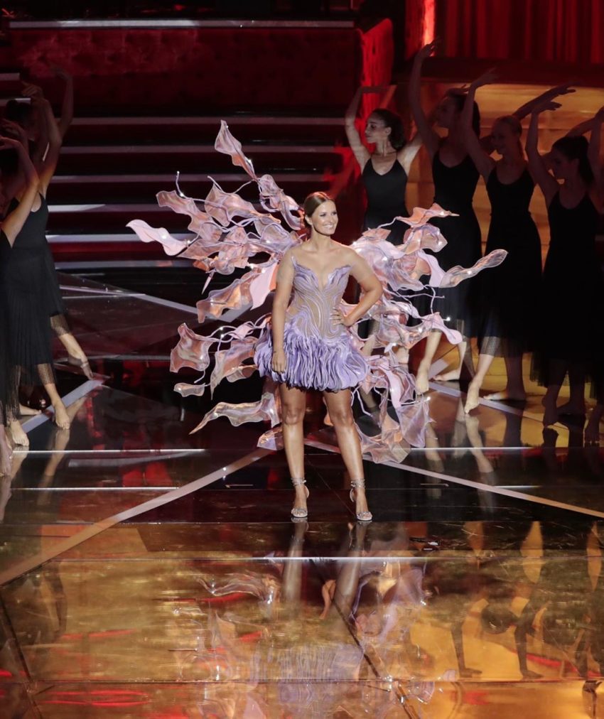 Finalmente, o quinto vestido, rosa, curto e de plumas, da autoria do jovem criador David Ferreira, fechou a noite da mulher de 41 anos que começou a dar nas vistas em 2004 no programa da TVI “Você na TV”.