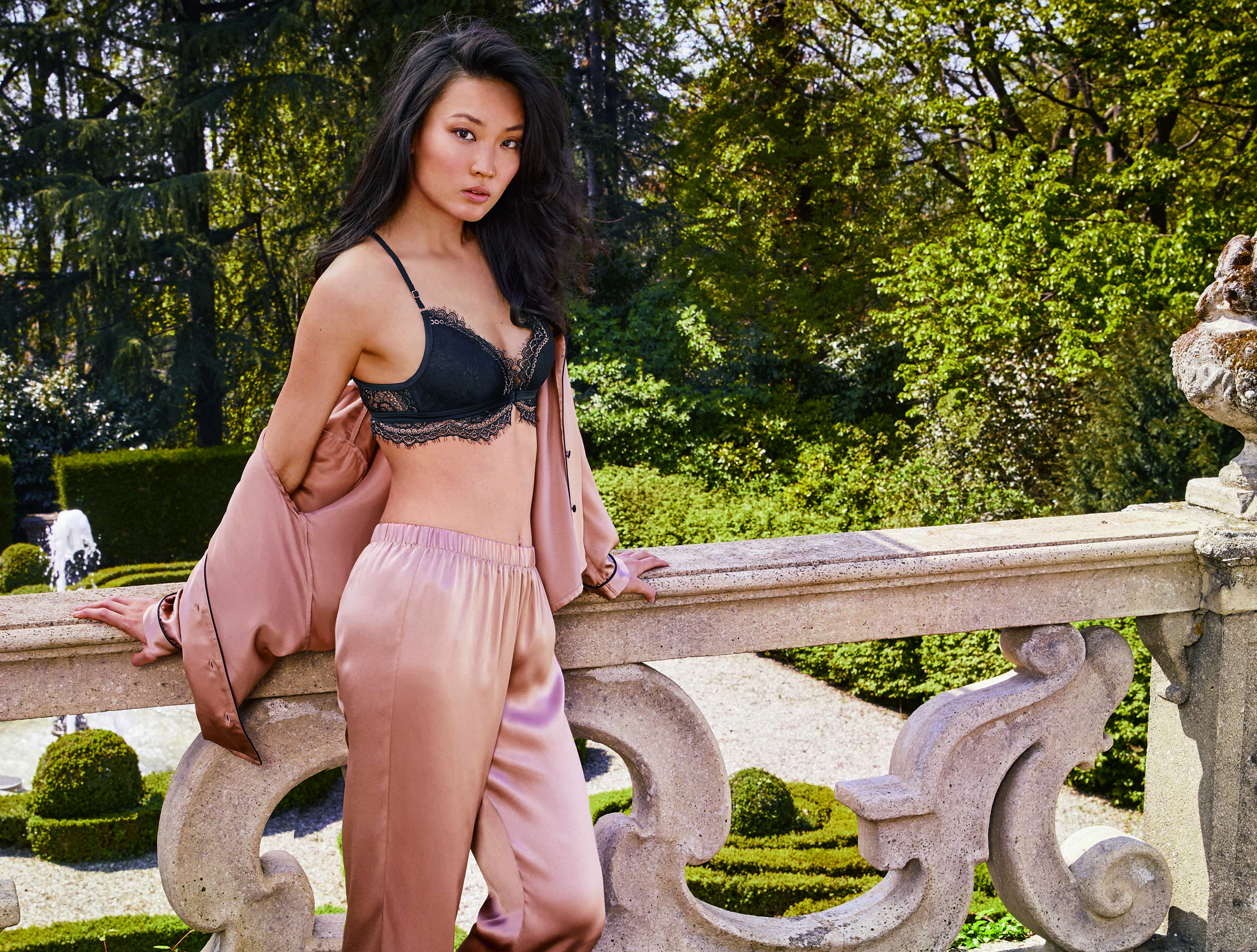 O cenário é um misterioso Jardim Secreto, um verdadeiro jardim italiano com bouquets temáticos, renda floral e padrões botânicos para looks da cabeça aos pés com as cores quentes de outono. Romântica e feminina, no entanto, contemporânea, a lingerie e os conjuntos de pijamas criam uma coleção diversificada com combinações sofisticadas, através de contrastes e transparências.