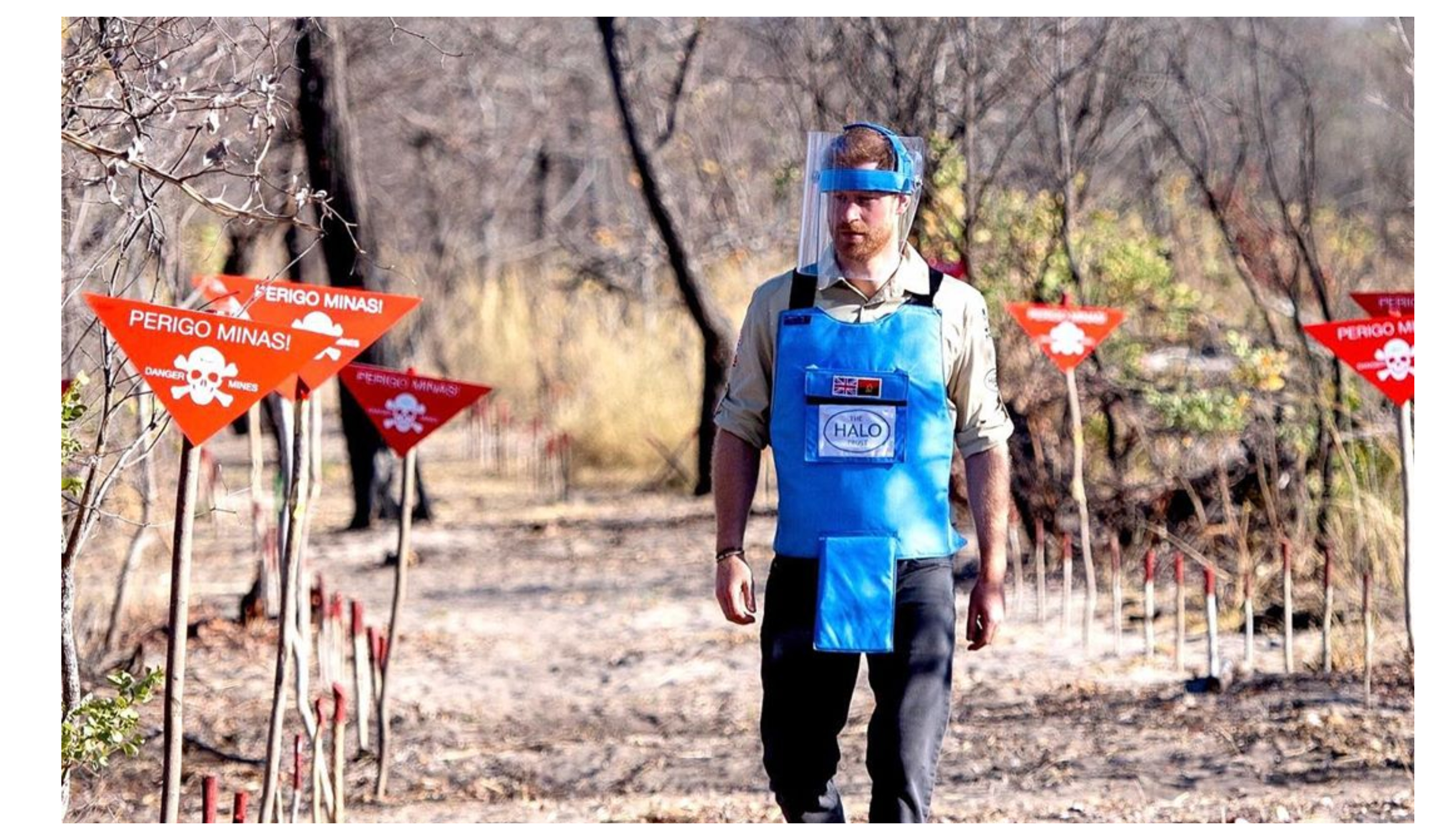 Harry detonou remotamente uma mina e discursou sobre a importância de limpar as minas terrestres, continuando o trabalho iniciado pela sua mãe.
