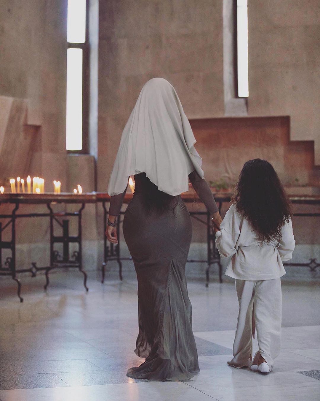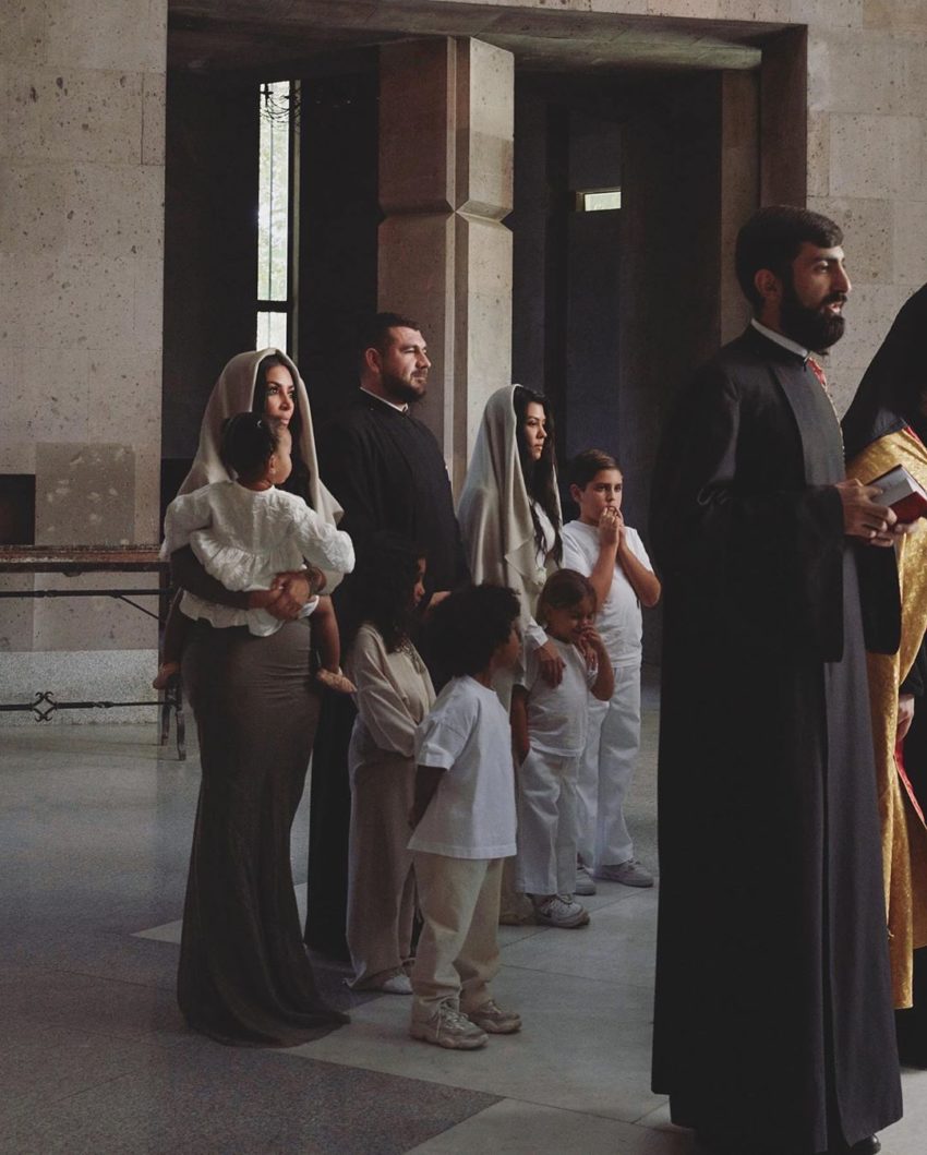 “Tão abençoada por ter sido batizada junto com meus bebés na Mãe Sé da Santa Etchmiadzin, a principal catedral da Arménia, que às vezes é chamada de Vaticano da Igreja Apostólica Arménia. Esta igreja foi construída em 303 dC”, explicou na legenda das imagens.