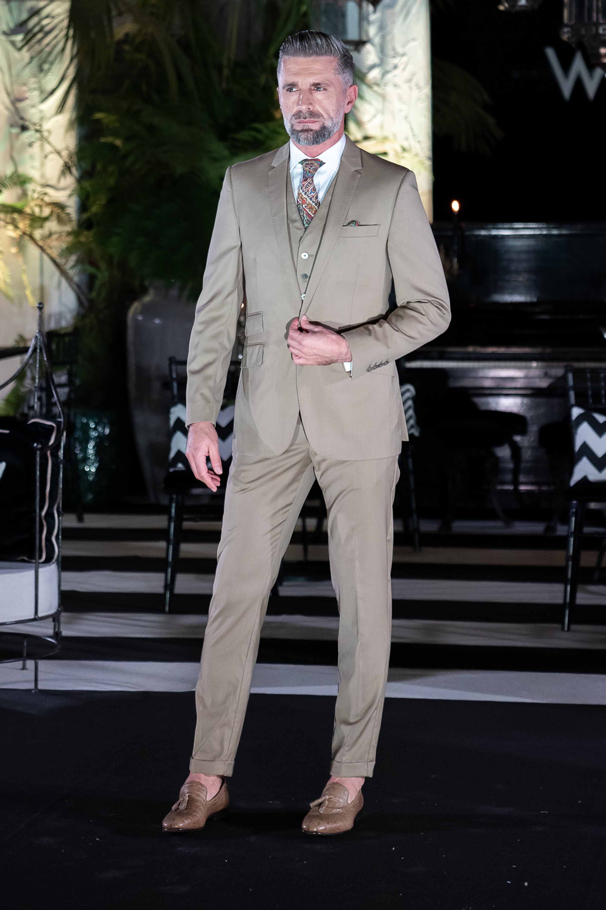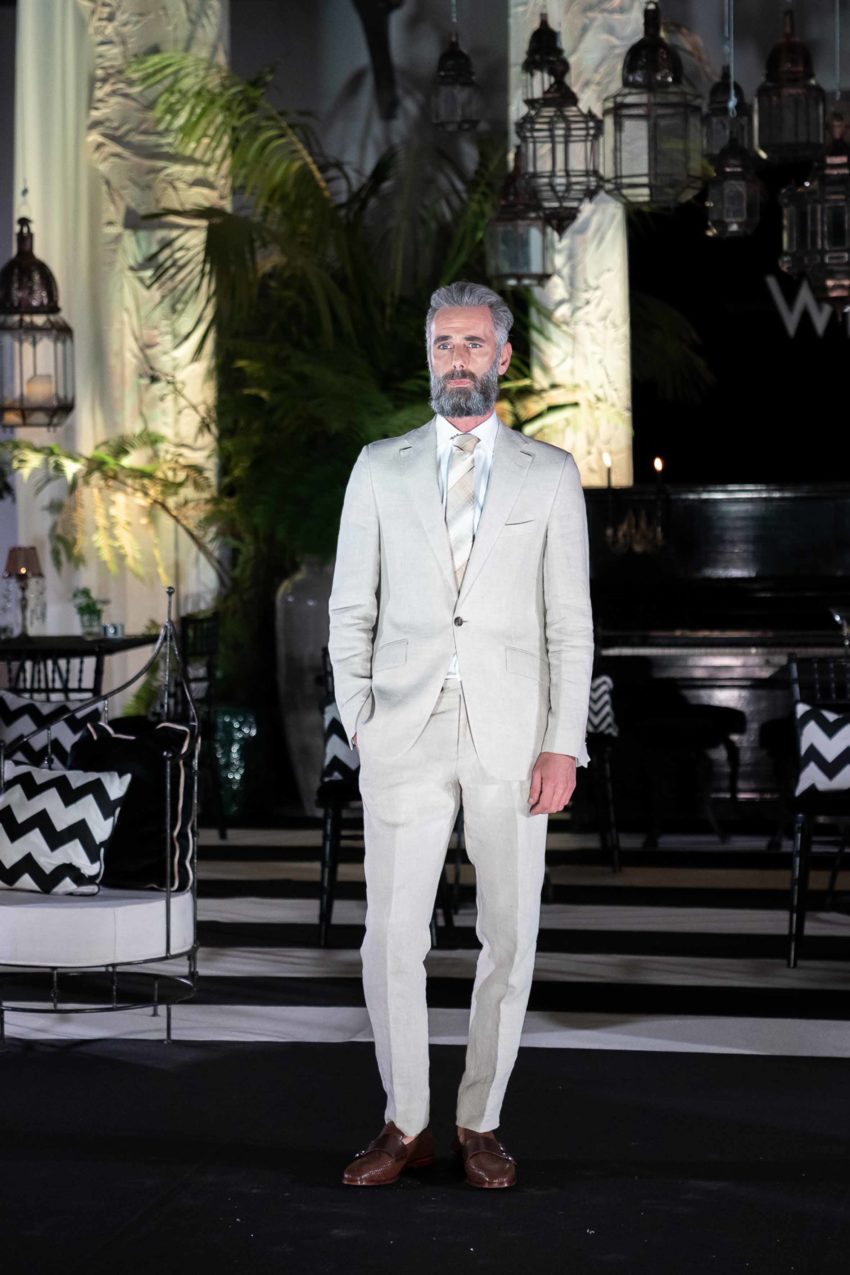 O designer, que tem um grande foco na linha masculina, caracterizou a coleção pelas linhas clássicas da alfaiataria tradicional e uma paleta de cores onde predominaram os tons cinza, beje e preto.