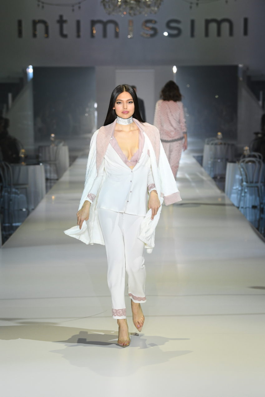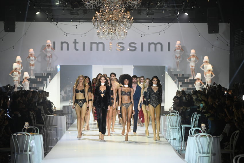 Vozes alegres, o barulho dos saltos e a agitação da seda a fluir encantaram os convidados especiais à chegada, recebidos na bilheteira da estreia do desfile de moda FW 19-20 da Intimissimi.