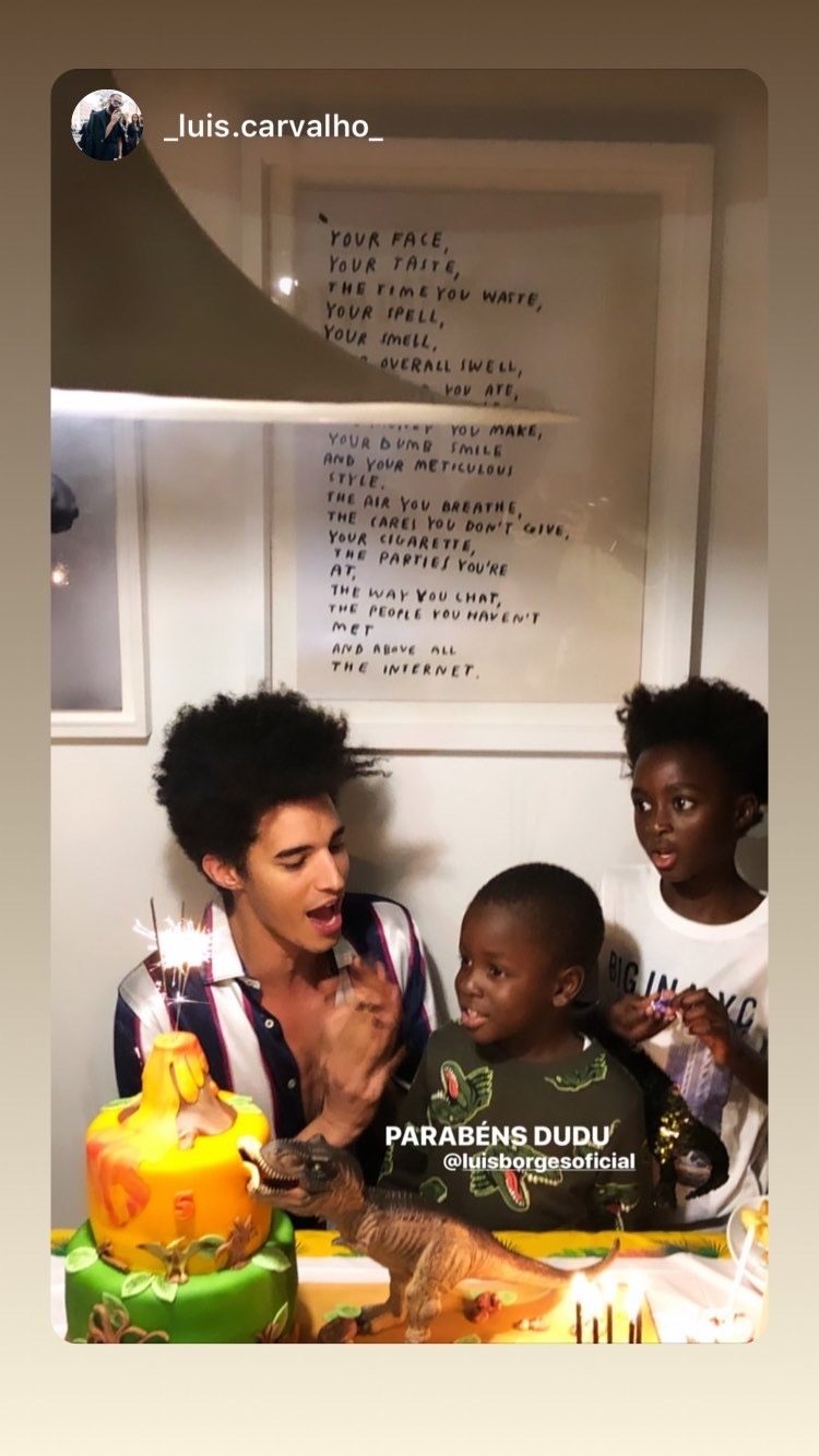 Rodeado de amigos e de presentes, Eduardo escolheu como tema “os dinossauros” que estiveram representados em vários elementos, desde a decoração ao bolo de aniversário, que encantou a criança e o pai Luís, que se mostrou orgulhoso com a festa do filho caçula. “A tua felicidade para mim é tudo. Amo-te Edu”, escreveu o modelo na legenda das imagens partilhadas nas redes sociais.