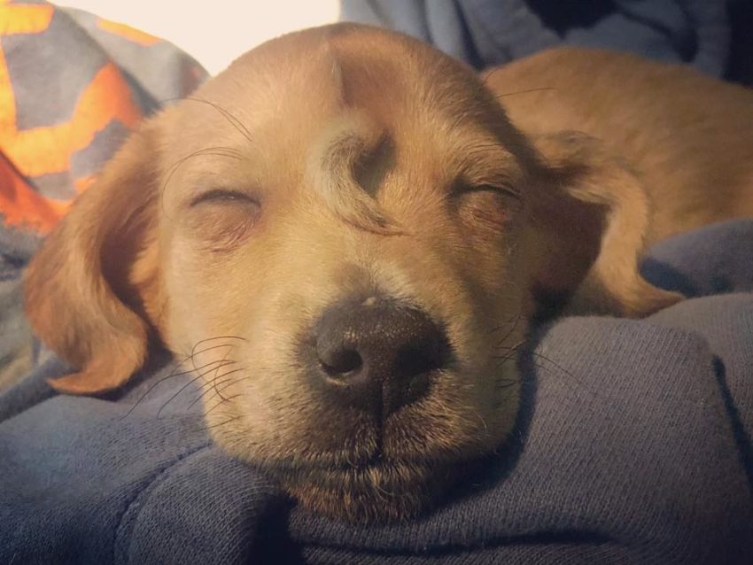 Narwhal é um cachorro com cerca de dois meses que nasceu com uma segunda cauda na cabeça e que foi abandonado na rua.