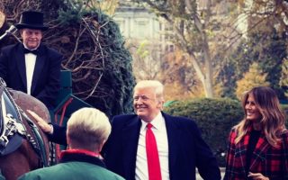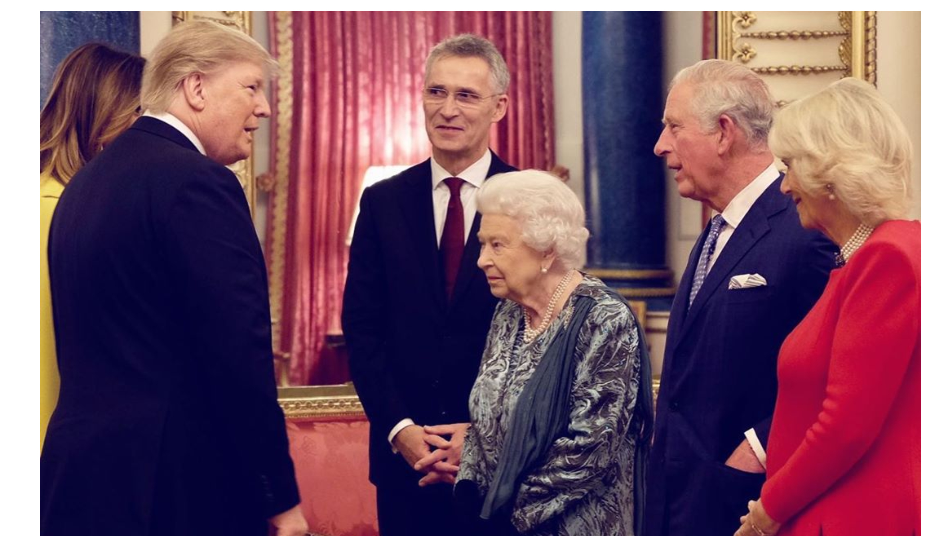 O momento, captado em vídeo pelos jornalistas presentes, que tem como protagonistas o casal Trump, a rainha Isabel II e a filha, a princesa Ana, está a correr mundo.