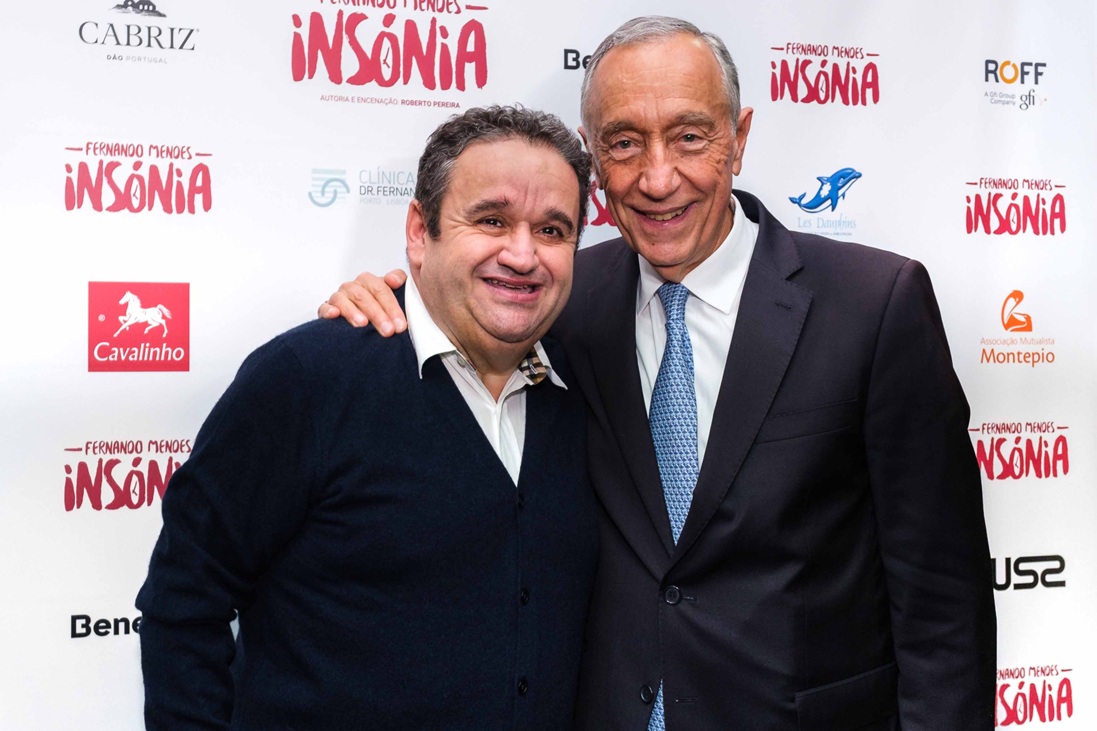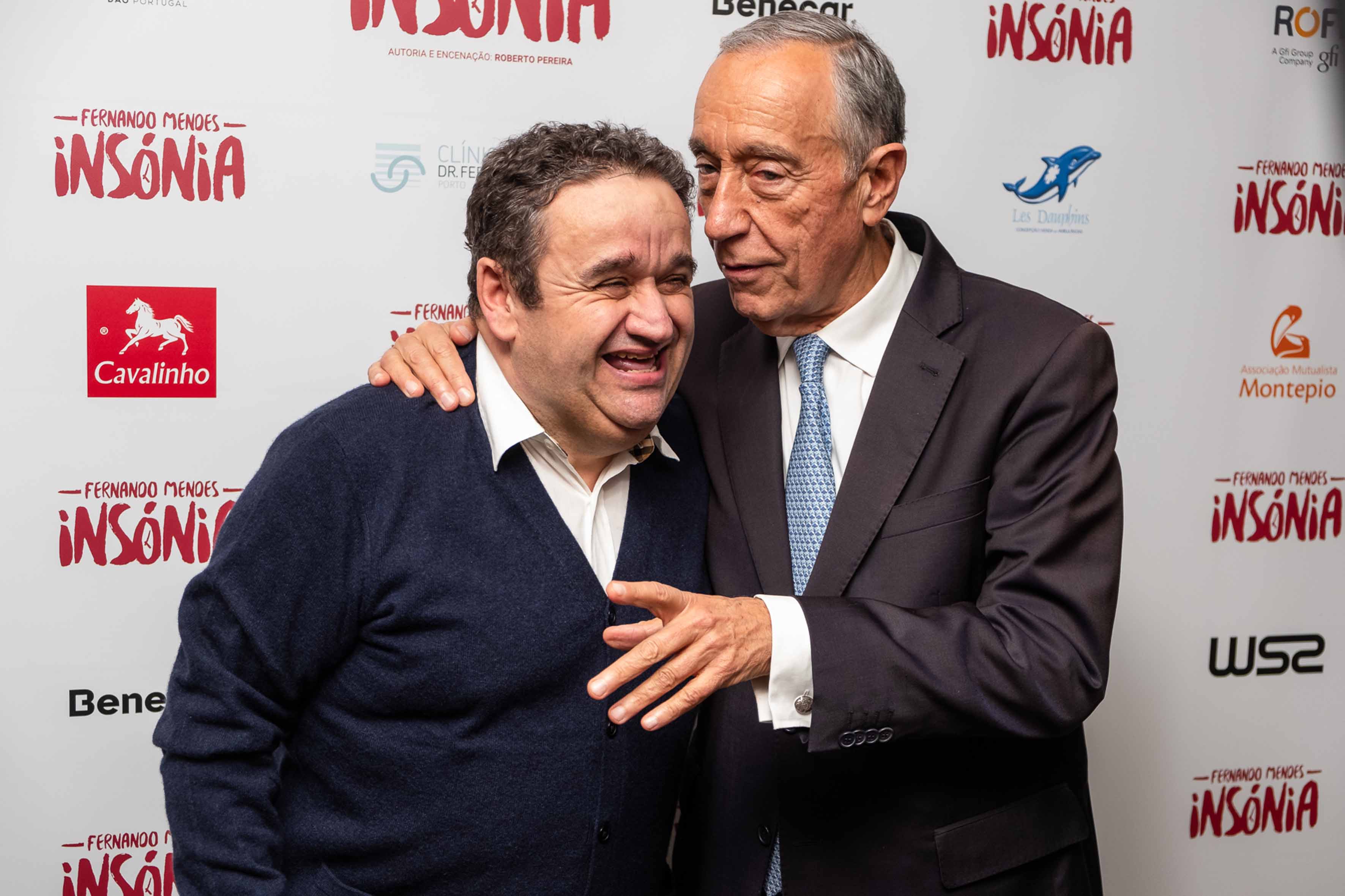 “Que honra ter na plateia do meu espetáculo o nosso Presidente da República Portuguesa, Professor Doutor Marcelo Rebelo de Sousa. Um sincero obrigado de gratidão pela sua generosidade. Um bem-haja”, manifestou publicamente Fernando Mendes, que, sozinho em palco, introduz no espetáculo figuras com quem contracena através da televisão. Veja as fotos: