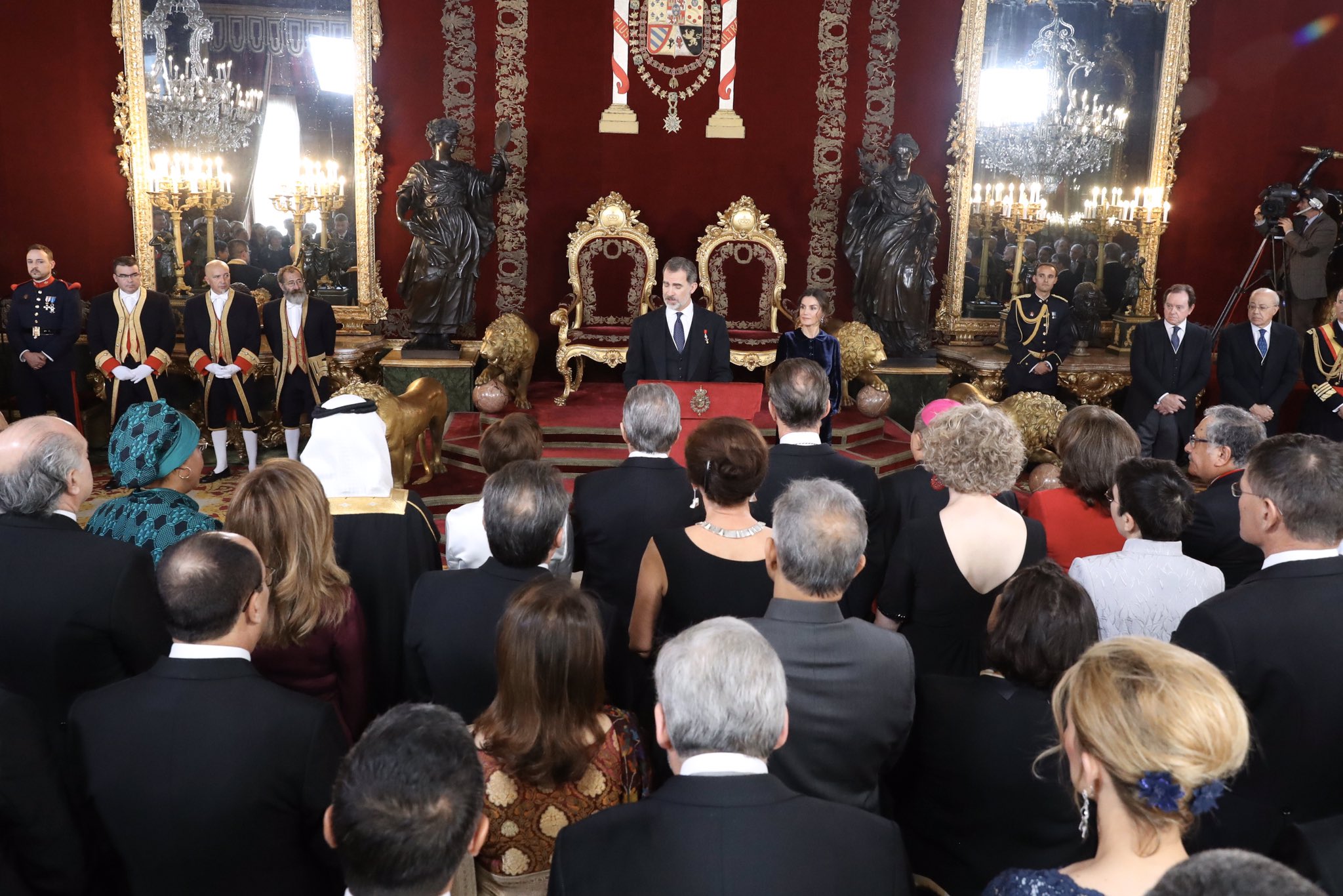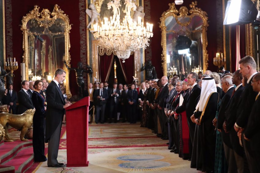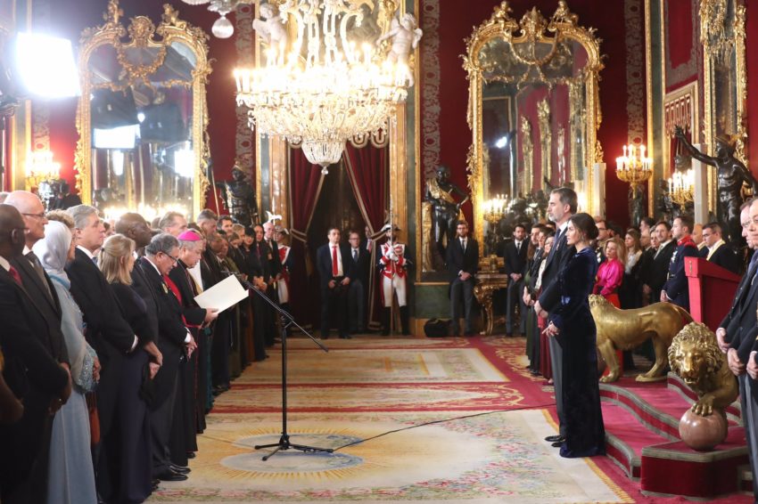 Esta manhã os reis da Espanha ofereceram a tradicional receção anual ao Corpo Diplomático, no majestoso salão Gasparini do Palácio Real de Madrid.