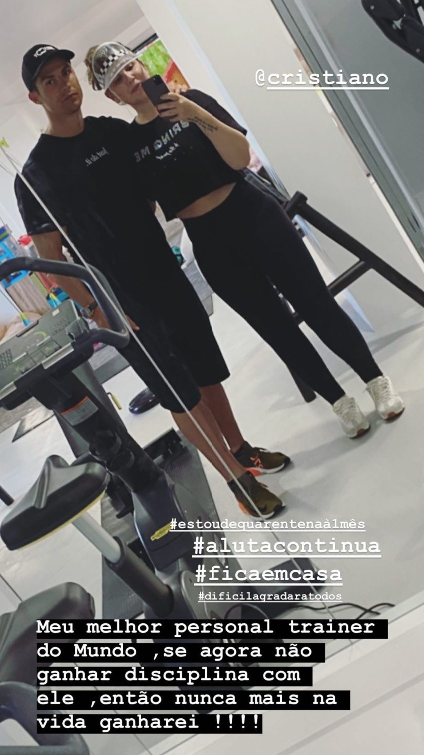 Nem a mãe do atleta escapa aos treinos, como mostrou este sábado Dolores Aveiro nas redes sociais. “A passar por aqui só para desejar um bom fim de semana, e dizer também que eu aqui por casa, não tenho desculpa para não me recuperar, motivação, inspiração e muita vontade não me falta“, escreveu a matriarca na legenda de uma foto onde surge rodeada pelos filhos Cristiano, Katia e Elma.