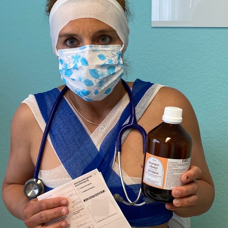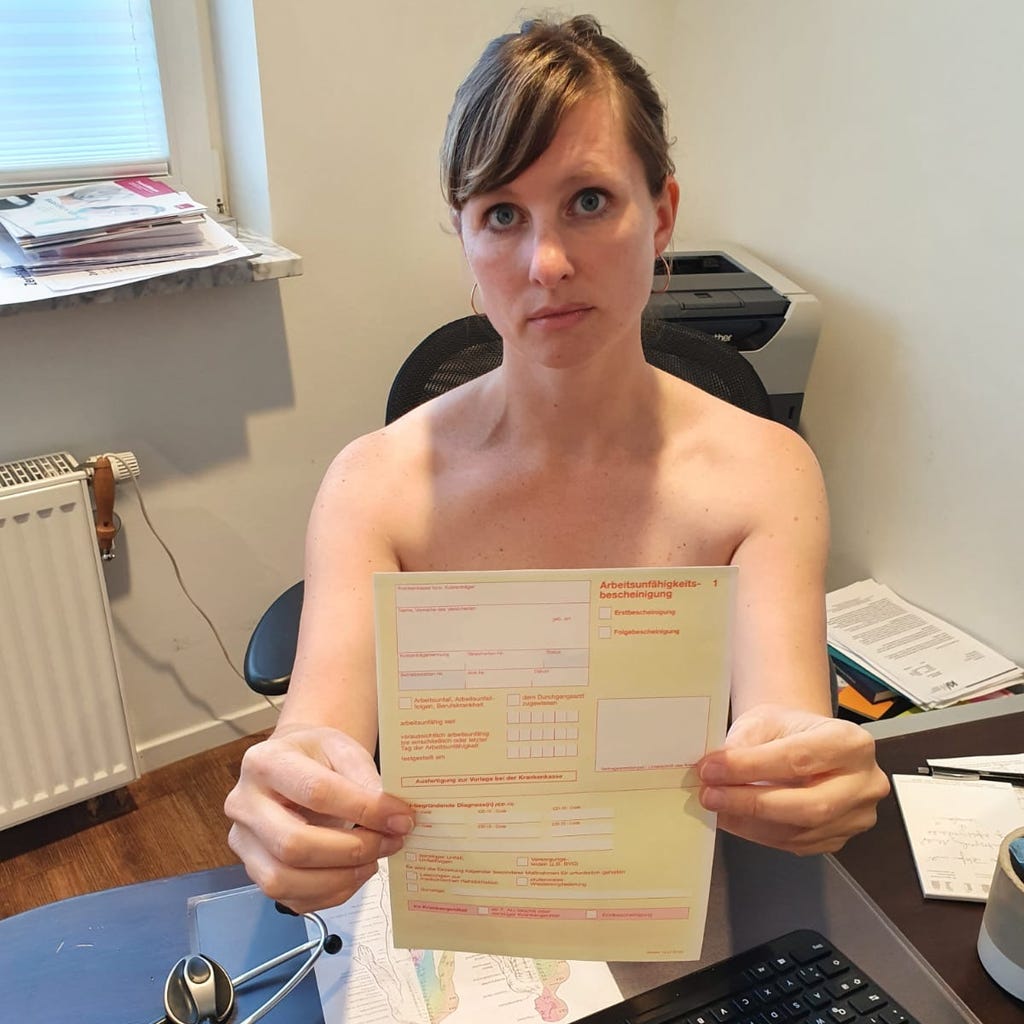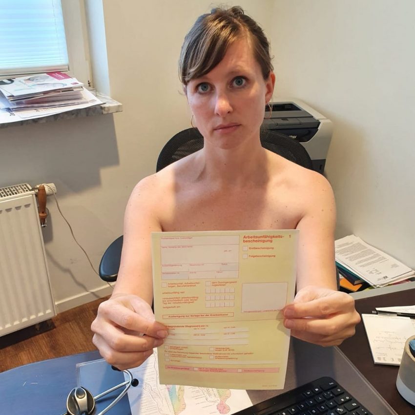 “A nudez é um símbolo do quão vulneráveis estamos sem proteção“, disse Ruben Bernau ao jornal médico Ärzte-Zeitung, lamentando estar, tal como o resto da equipa, insuficientemente equipado para lidar com a Covid-19. “Treinada para costurar feridas“, explicou Jana Husemann, a médica que se vê obrigada a costurar a sua própria máscara de proteção.