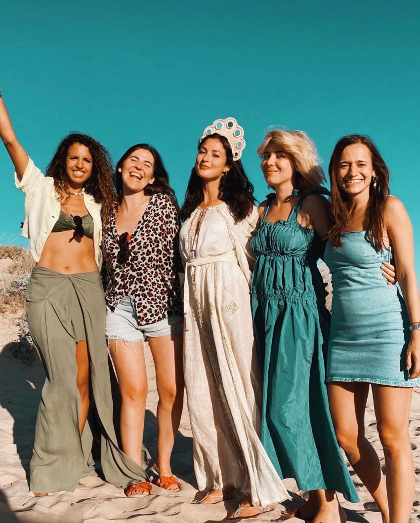 A noiva escolheu para a ocasião um vestido estilo boho chic e sandálias rasas, e na cabeça usou uma tiara que lhe conferiu o ar de rainha da festa.