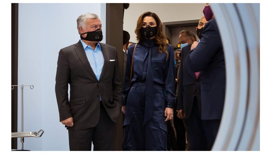 No domingo, a monarca, surgiu acompanhada pelo marido, o o rei Abdullah, para a inauguração de uma ala de oncologia no Hospital Público Al Bashir.