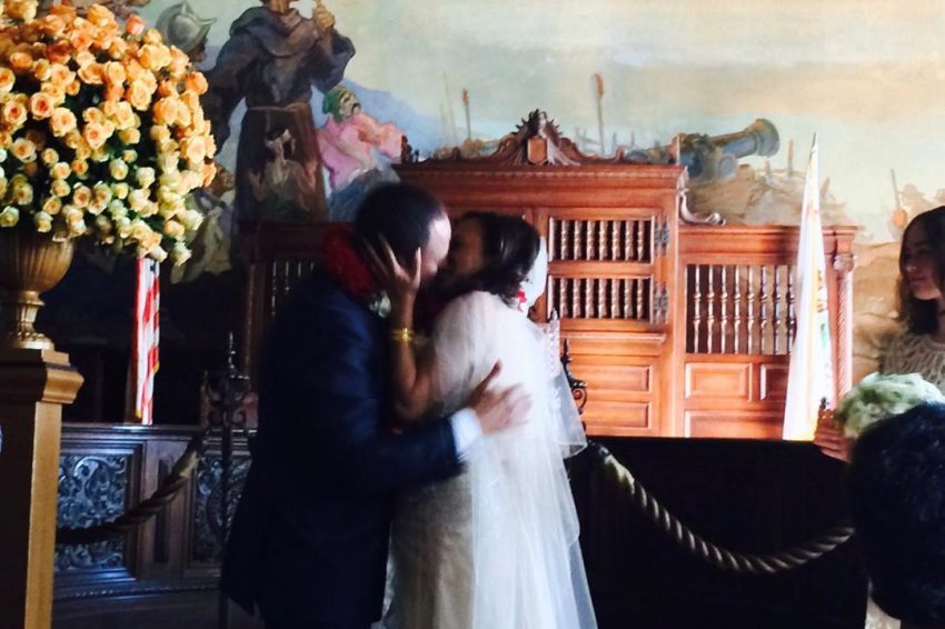 Emhoff descreveu rapidamente que se apaixonou por Harris e, na manhã seguinte ao primeiro encontro, terá escrito um e-mail para Harris. “Estou muito velho para jogar ou esconder a bola”, dizia. “Eu gosto muito de você e quero ver se podemos fazer isso funcionar.” Os dois casaram-se menos de um ano depois numa cerimónia civil realizada no tribunal de Santa Bárbara numa tarde de sexta-feira. A irmã mais nova de Harris, Maya, oficiou a cerimónia civil.