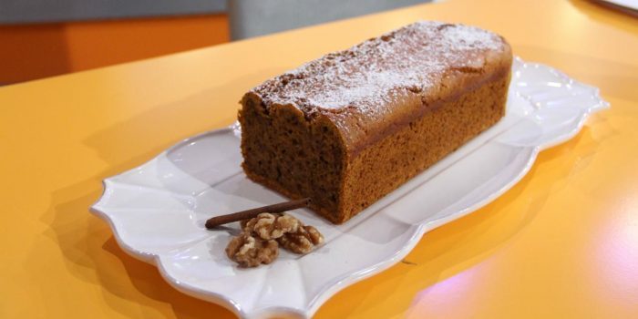 1 – Ligue o forno a 180º e forre uma forma tipo bolo inglês com papel vegetal;
