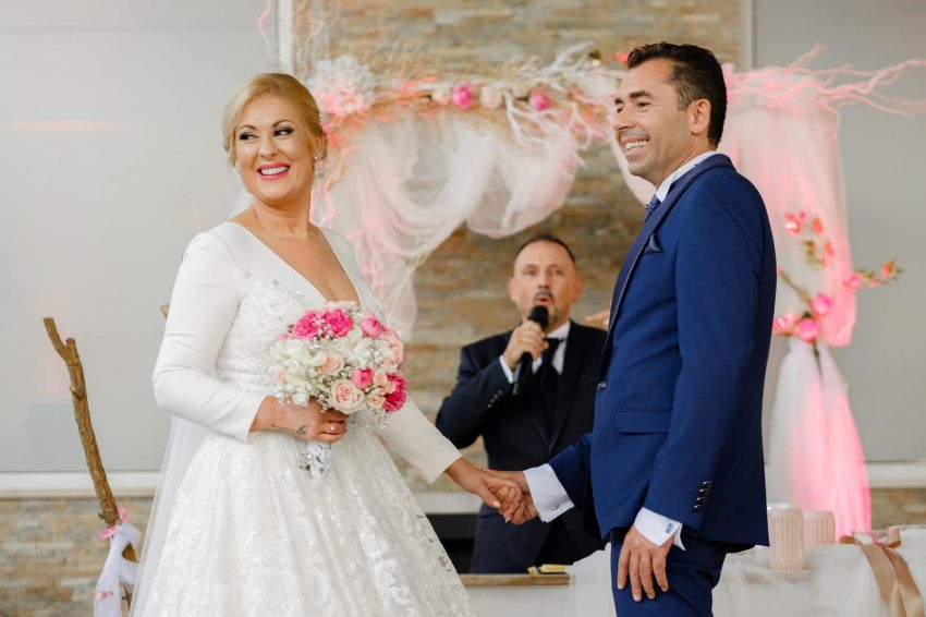 Na cerimónia preparada pelo noivo, que foi de encontro ao gosto romântico da amada, Rebeca foi acompanhada até ao altar pelo filho, Rubim, de 12 anos, fruto de uma anterior relação.