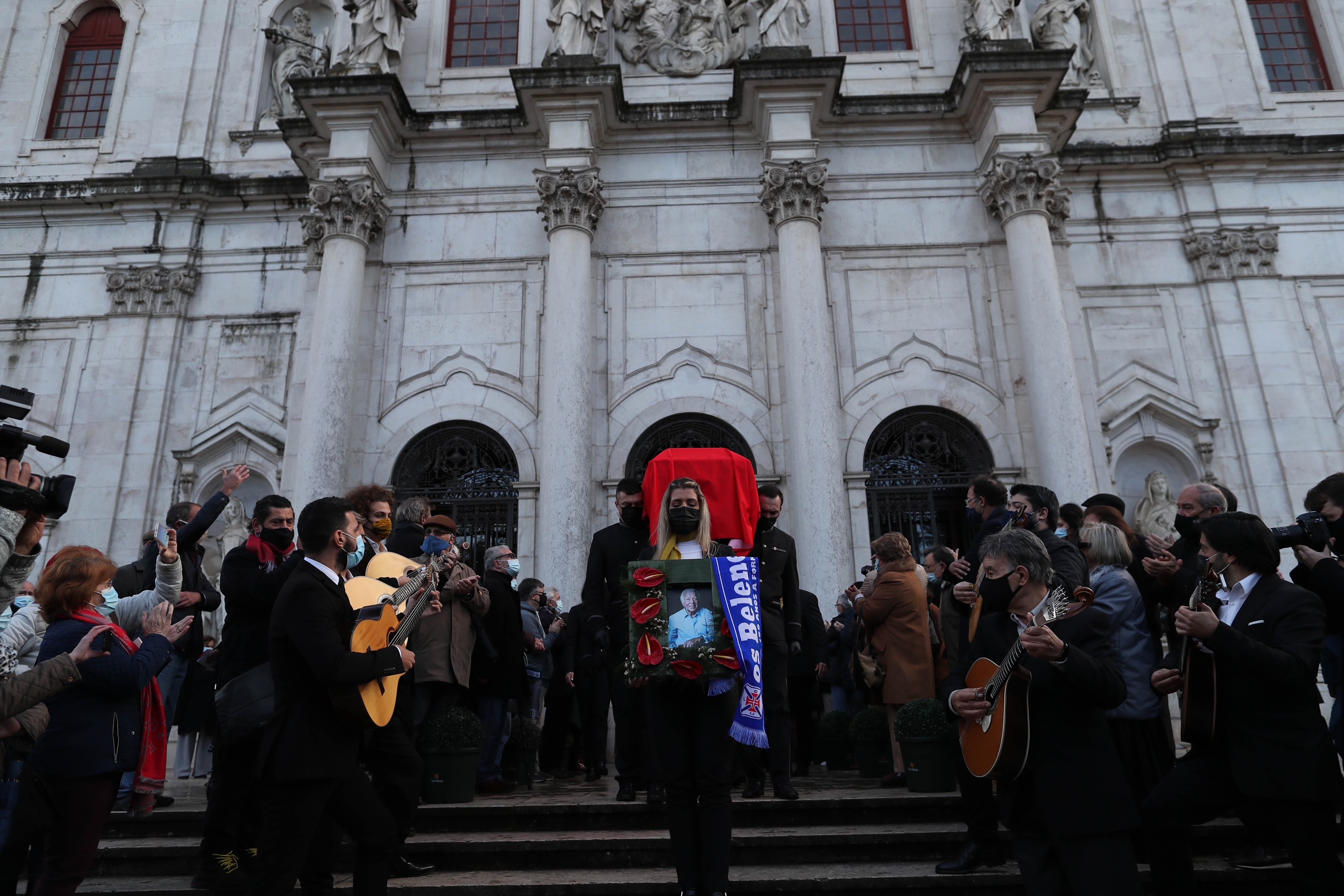 O caixão deixou a Basílica ao som de “Lisboa Menina e Moça” tocada por guitarristas, canção, que a partir de hoje, dia 4 de janeiro, é a música oficial da cidade.