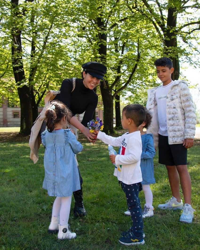A modelo, de 27 anos, sempre se assumiu como a mãe dos quatro, apesar de ter dado à luz apenas Alana Martina. Gio tem sido uma mãe exemplar e em nenhum momento deu a perceber qualquer tipo de preferência.