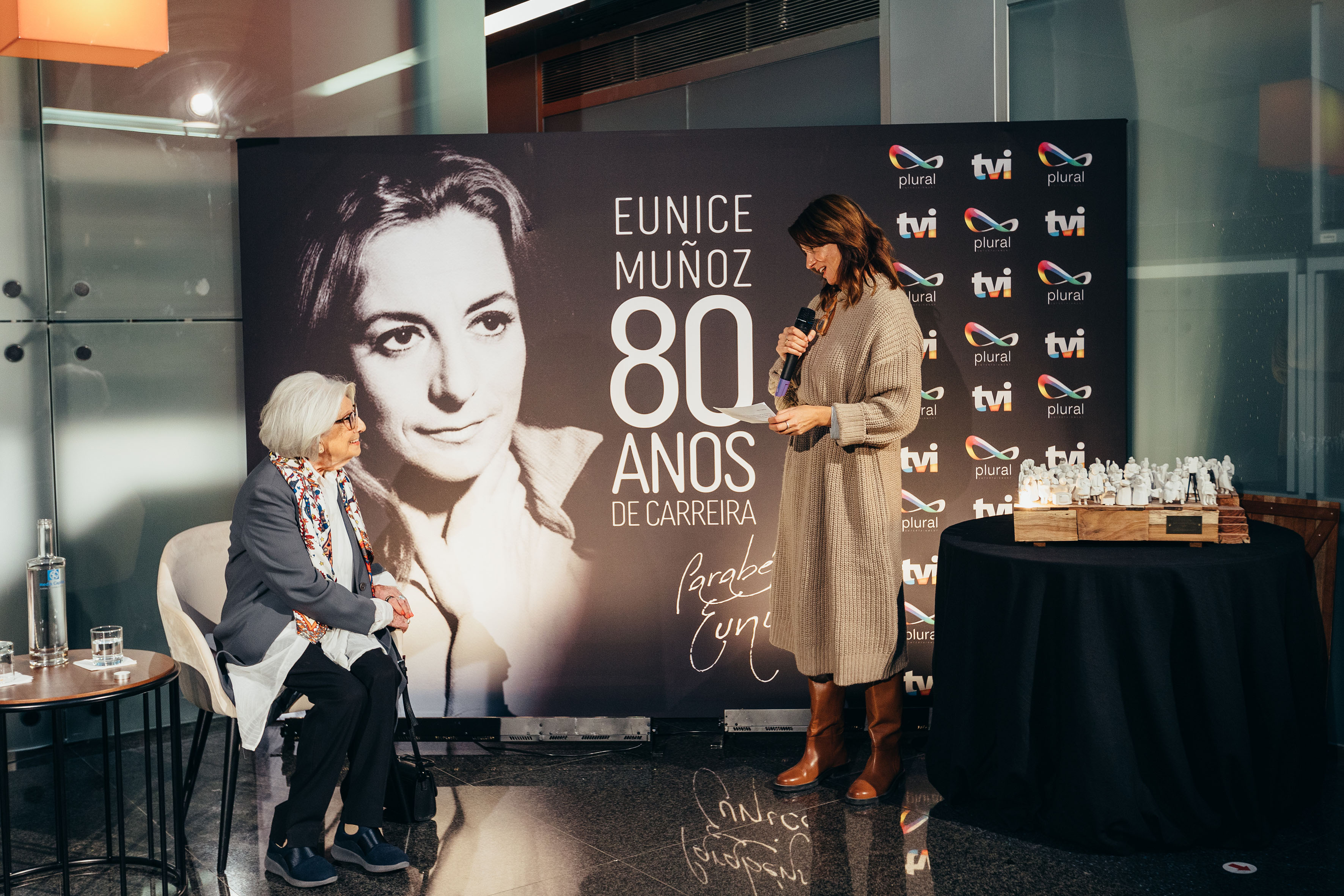 A TVI e a Plural orgulham-se de fazer parte da sua extraordinária história de vida e, de forma a homenagear a atriz, foi esta terça-feira entregue pelo CEO do Grupo Media Capital, Luís Cunha Velho, uma obra de arte concebida pela artista Anna Westerlund, que simboliza as principais personagens de Eunice Muñoz, em televisão e no teatro, ao longo da sua carreira. Luís Cunha Velho falou do percurso de Eunice Muñoz no teatro, televisão e cinema, salientando os vários projetos da TVI em que a atriz participou.